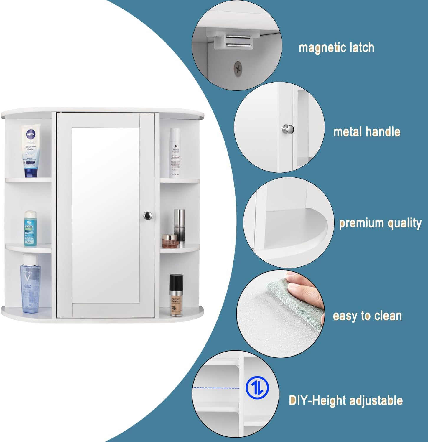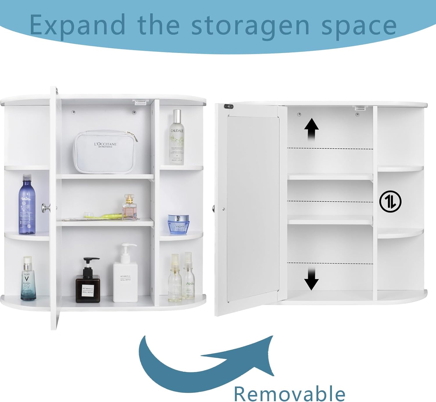 - ✅[Spiegelschrank mit verstellbaren Einlegeboden]: Die 2 internen Regale sind um 6,4 cm verstellbar, um die Alltagsgegenstände aufzubewahren. Die Tür mit Griff lässt sich leicht nutzen und hält die Dinge sicher und sauber von Insekten und