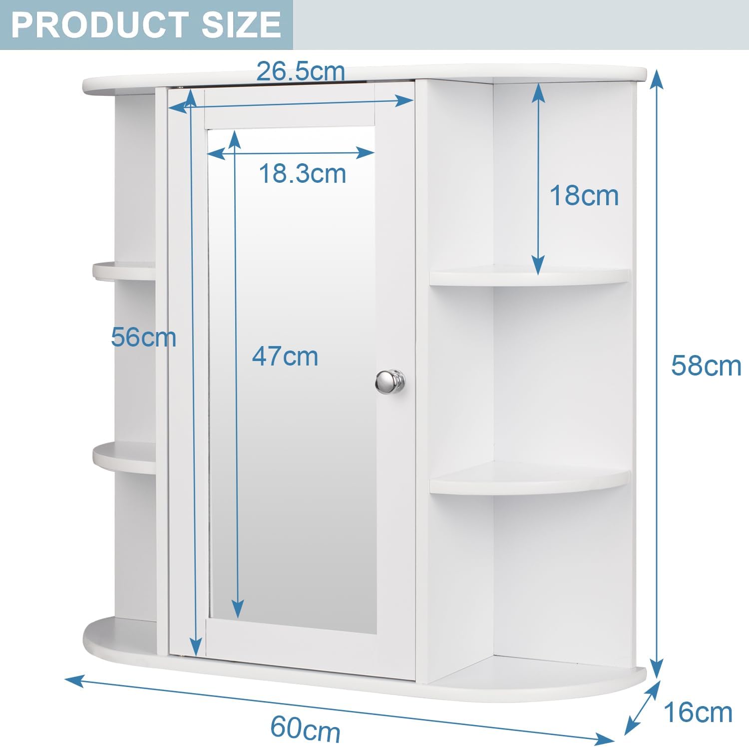 - ✅[Schrank mit viel Stauraum]: Der kleine Schrank misst 60x58x16 cm und hat 3 Einlegeböden (14x18 cm) auf jeder Seite und 3 hinter der Spiegeltür (Höhen: 20; 11; 21 cm). Grosser Stauraum kann so viele Badeutensilien wie möglich aufbewahren
