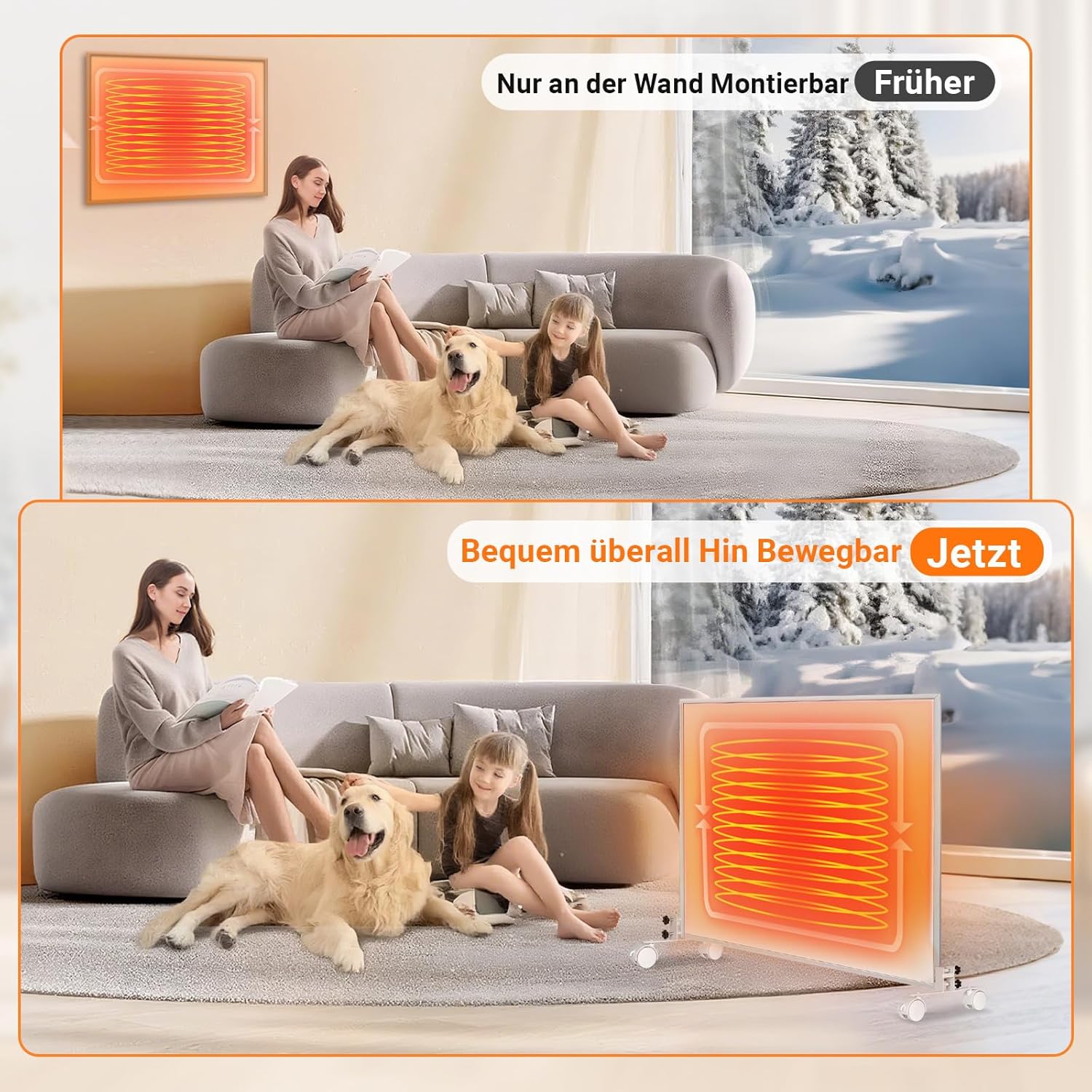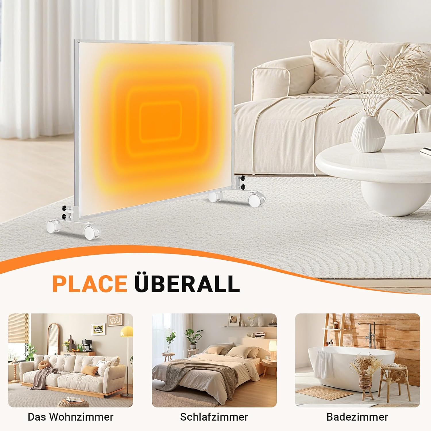 - 👉【Leicht zu bewegen】Die Räder können um 360° geschwenkt werden, infrarotheizungen können leicht und flexibel in jede Position bewegt werden, die Rollen sind auch mit einer Bremsfunktion ausgestattet, um zu verhindern, dass infrarotheizungen