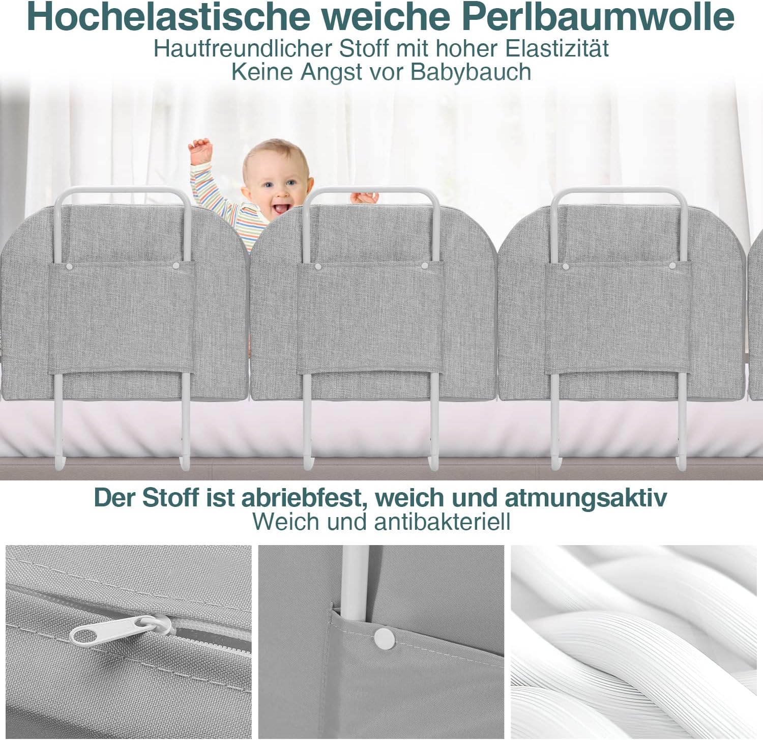 - - Hochwertiges Material: Der Eulenke Bettschutz verwendet einen robusten Rahmen aus Eisen und einen weichen, umweltfreundlichen Kern aus Perlenbaumwolle. Das Material ist zu 100% sicher, geruchlos, elastisch, atmungsaktiv und hautfreundlich.