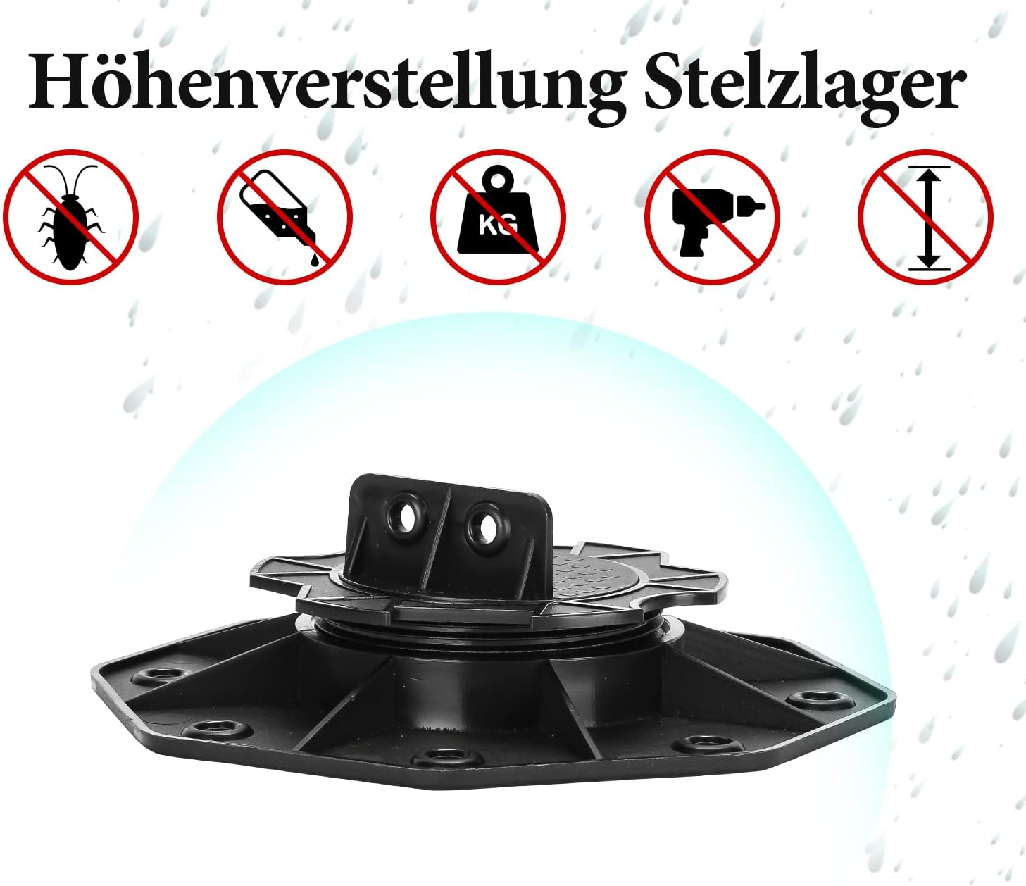 - ☀️BREITES ANWENDUNGSSPEKTRUM - Stelzlager oder auch Plattenlager ebnen nicht nur Terrassen- und Balkonböden, sondern finden auch bei Flachdächern, begrünten Dächern, Springbrunnen-Konstruktionen oder Pooleinfassungen ihre Anwendung.