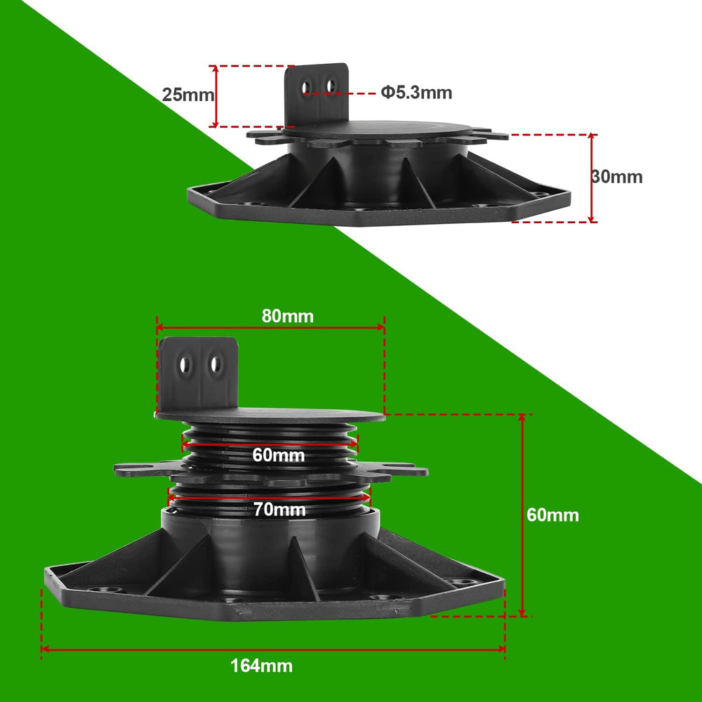 - ☀️HÖHENVERSTELLBAR - Stufenlos höhenverstellbar von 30 - 60 mm,durch einfaches Links-/Rechtsdrehen stufenlos das Höhenniveau eingestellt. Grösse:48*17*17cm. 20 Stück L-Adapter für Holz und WPC Unterkonstruktion.