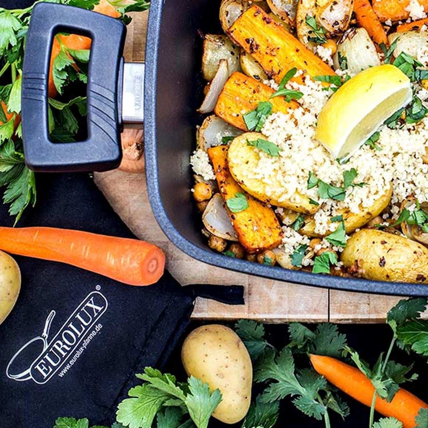 Eurloux Guss-Kasserolle 28 x 28 cm Induktion - Flache quadratische Universal Bratenkasserolle Alugus