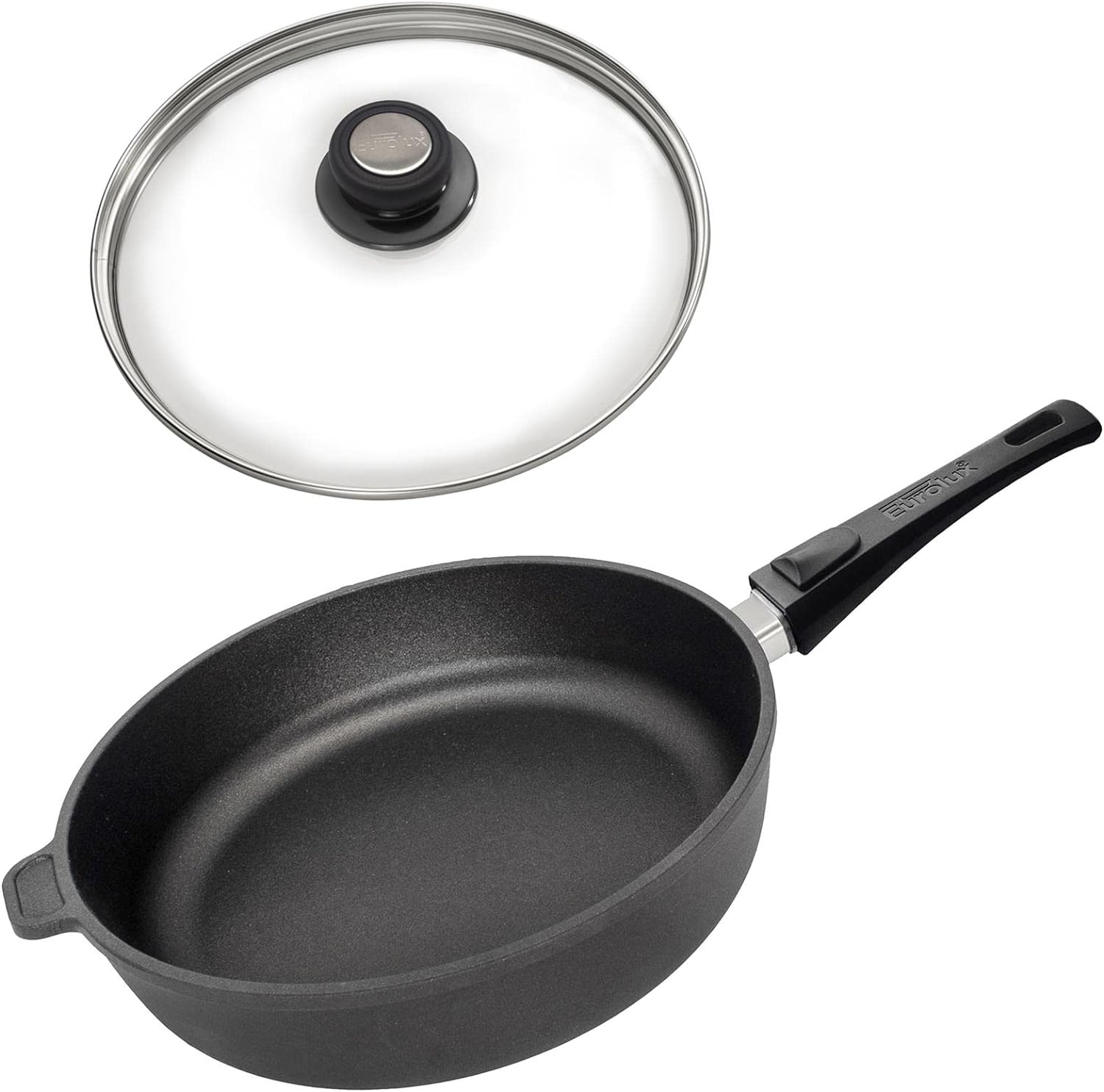 - Die induktionsfähige Anti Haft-veredelte PFOA-freie Hochpfanne aus Aluguss zum Braten und Schmoren ist spülmaschinengeeignet, nach jedem Einsatz und vor dem ersten Gebrauch empfehlen wir die einfache Handreinigung mit milden Spülmitteln unter warmen