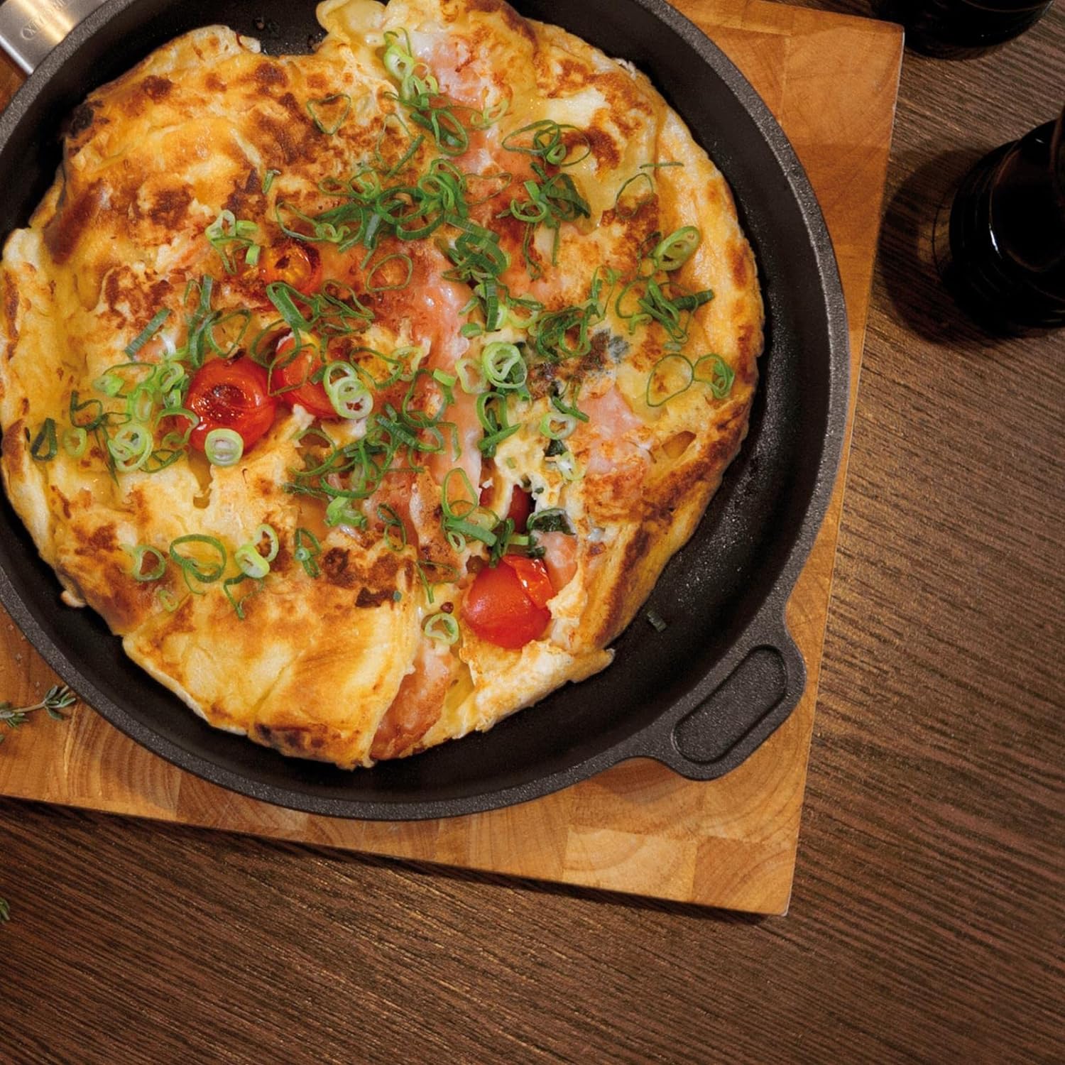 - Die induktionsgeeignete Guss-Pfanne ist ideal für die Zubereitung von z.B. Bratkartoffeln, Spiegelei, Fleisch, Würstchen, Steak, Gemüse, Pute, Fisch oder Hähnchen aber auch für Eierteigspeisen