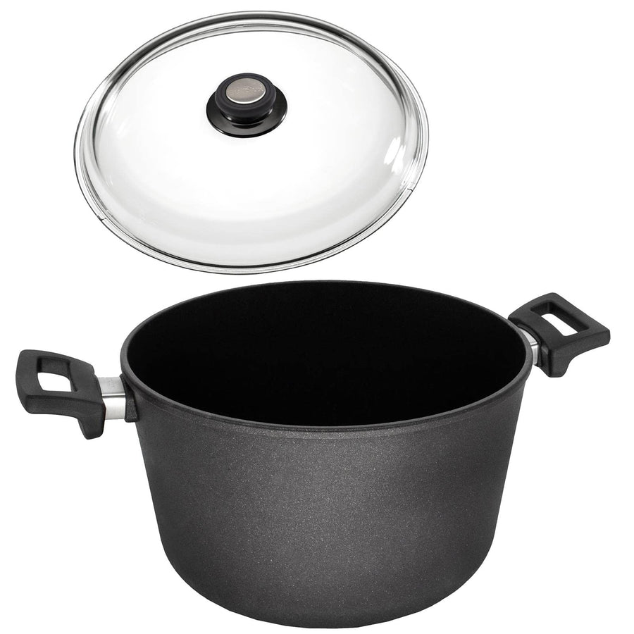 - Der grosse hohe Kochtopf Ø 28 cm ist Made in Germany und mit einem 17 cm hohen Schüttrand ausgestattet und besteht aus bis 240°C hitzebeständigen Aluguss mit abriebfester LuxTec-Antihaftveredelung