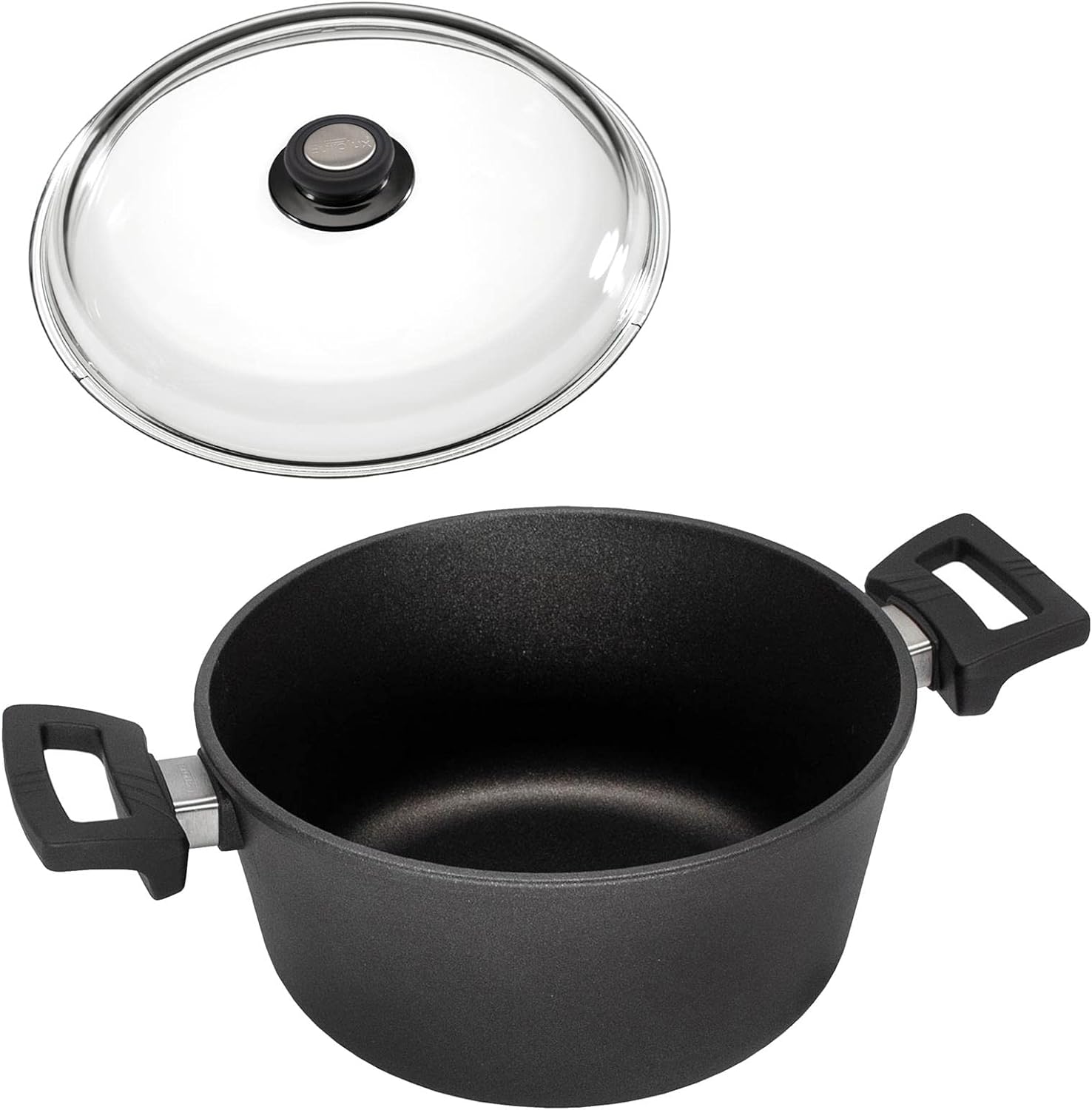 Eurolux Guss-Topf Set & Deckel Ø 24 cm - ca. 4,5 Liter - kleiner hoher Universal-Koch-Topf Aluguss m