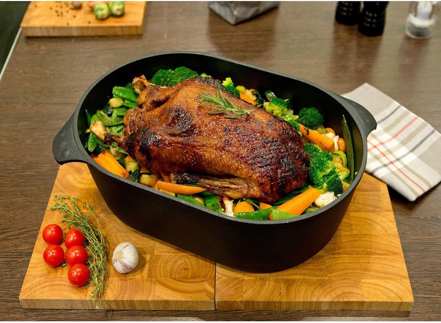 - Der robuste ovale induktive Gänsebräter aus Guss ist für den Backofen und zum Braten, Schmoren, Garen, Anbraten auf Gasherden, Elektroherden und Glaskeramikkochfeldern mit Induktion geeignet
