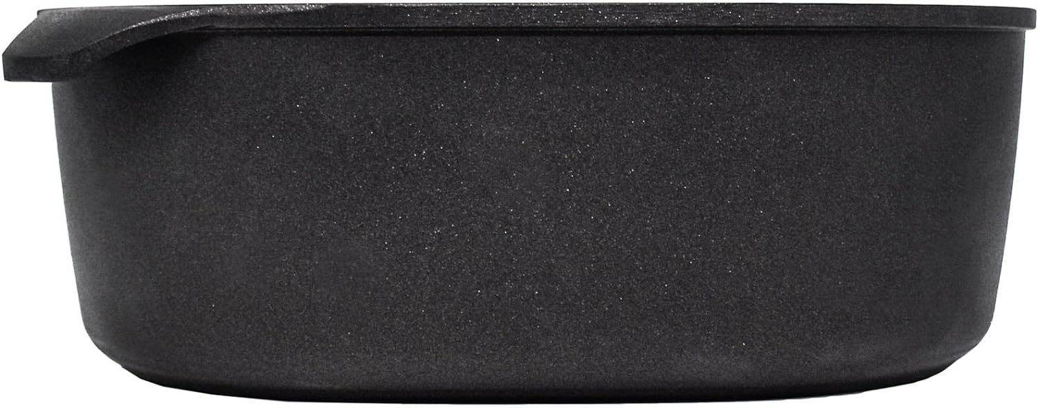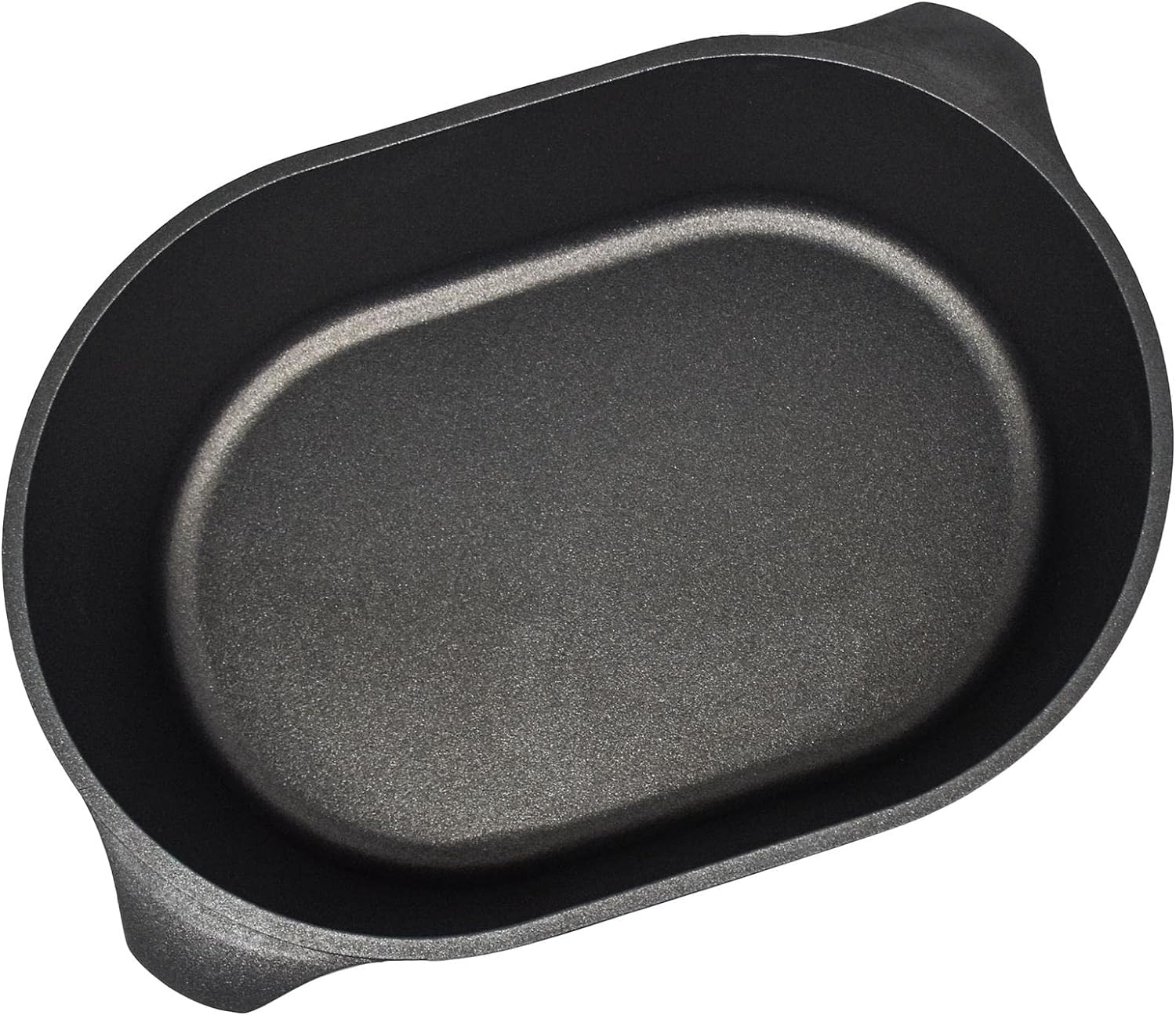 - Der grosse hohe Gussbräter 40 x 27 cm "Made in Germany" ist mit einem 13 cm hohen Schüttrand ausgestattet und besteht aus bis 240°C hitzebeständigen Aluguss mit abriebfester Antihaftbeschichtung