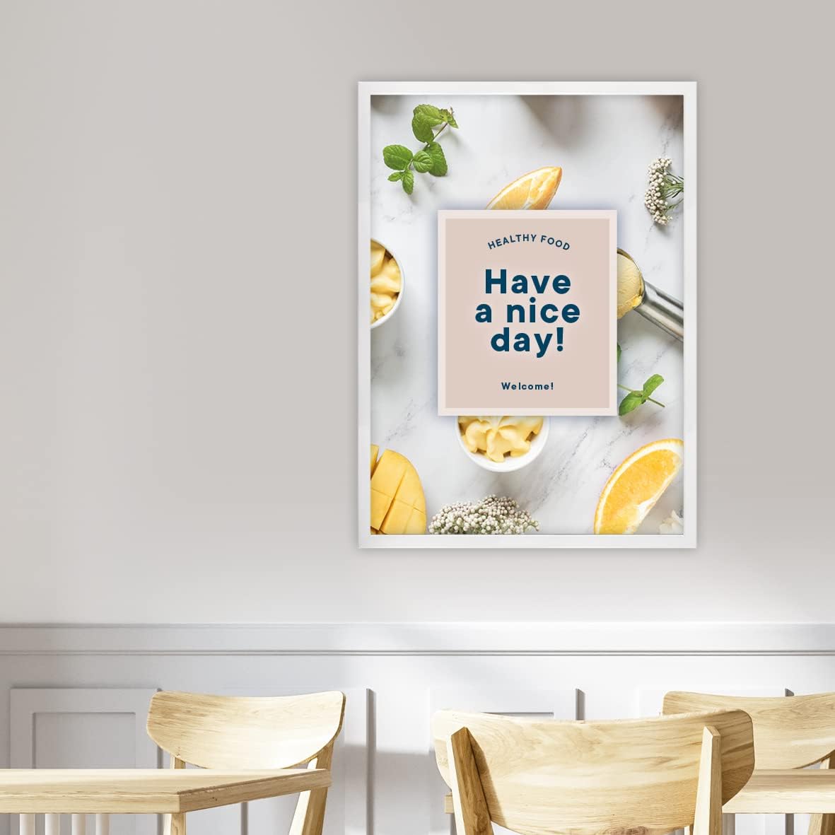 - INHALT IN EINEM AUGENBLICK TAUSCHEN: Das Tauschen des Inhalts geht ganz schnell. Einfach die Alu-Profile des Klapprahmens vorne öffnen, der an 4 Seiten hochgeklappt können, die blendfreie Folie entfernen, Poster oder Foto tauschen, neue in Position