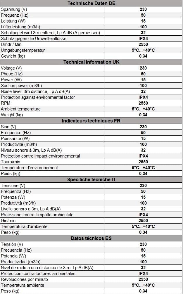 - Mit Feuchtigkeitssensor/Hygrostat und Timer/Nachlauf egelung