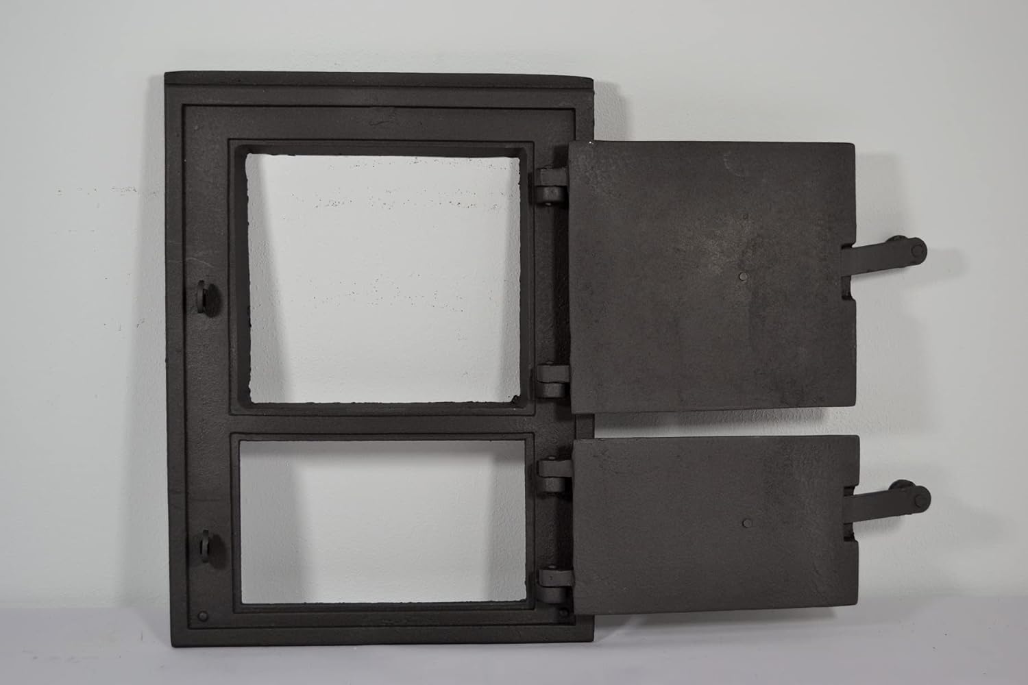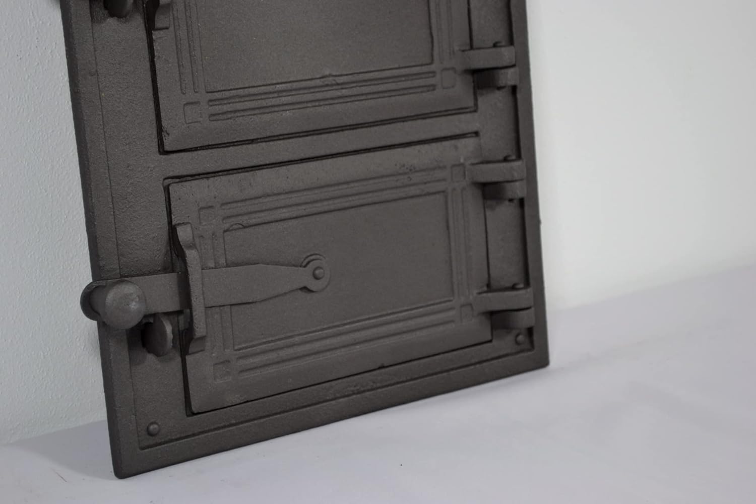 - 🚩 MATERIAL: Die Ofentür ist aus robustem und strapazierfähigem Gusseisen gegossen und garantiert somit eine lange Lebensdauer. Die Tür besitzt zwei Türen, eine kleinere unten und eine grössere oberhalb, was besonders praktisch bei zweistöckigen
