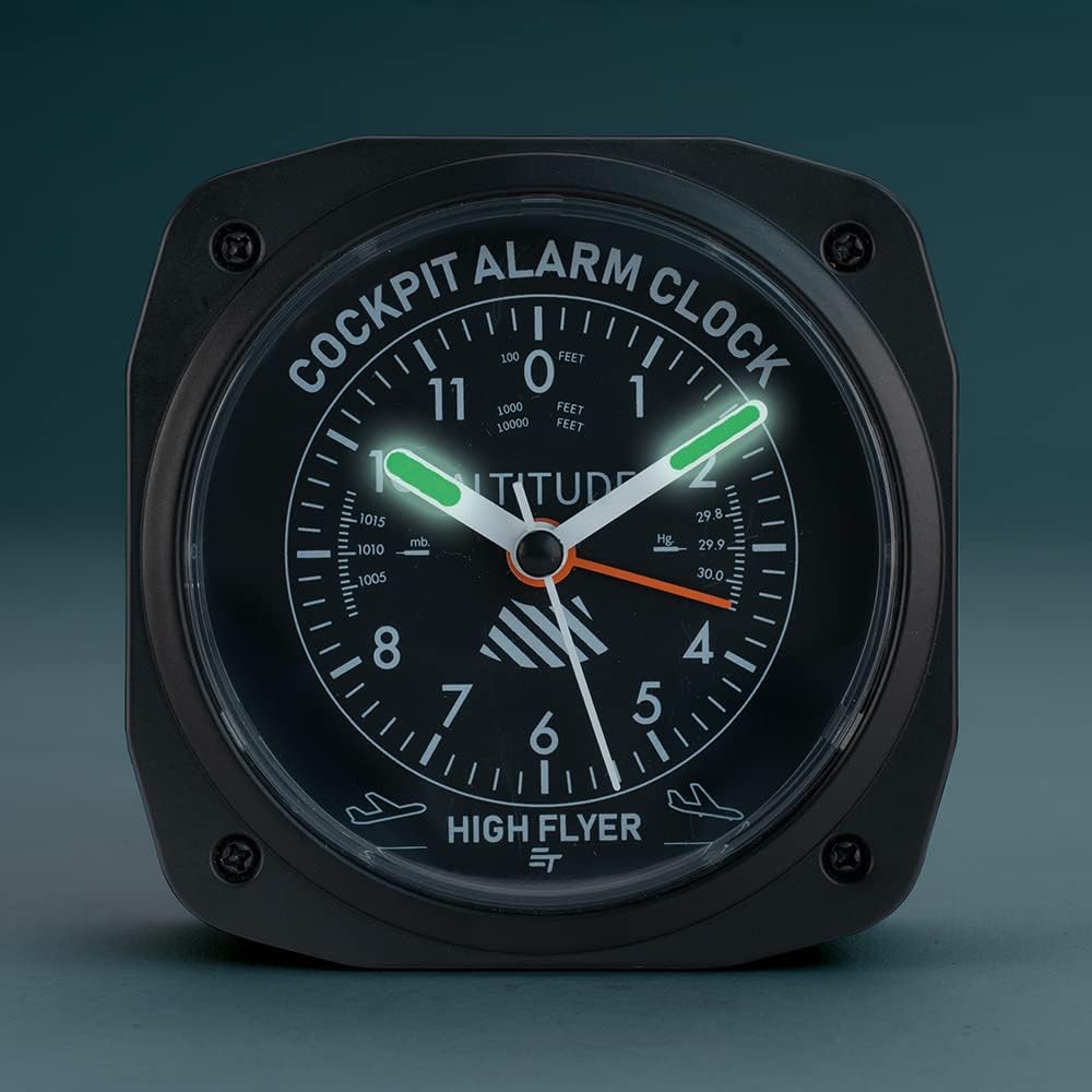 - COCKPIT-STIL: Der Wecker besticht durch seinen detailgetreuen Flugzeugarmatur-Look. Die Anzeige wirkt wie ein Höhenmesser im Cockpit eines Flugzeugs.