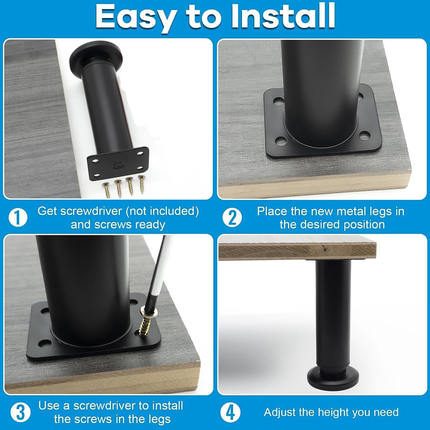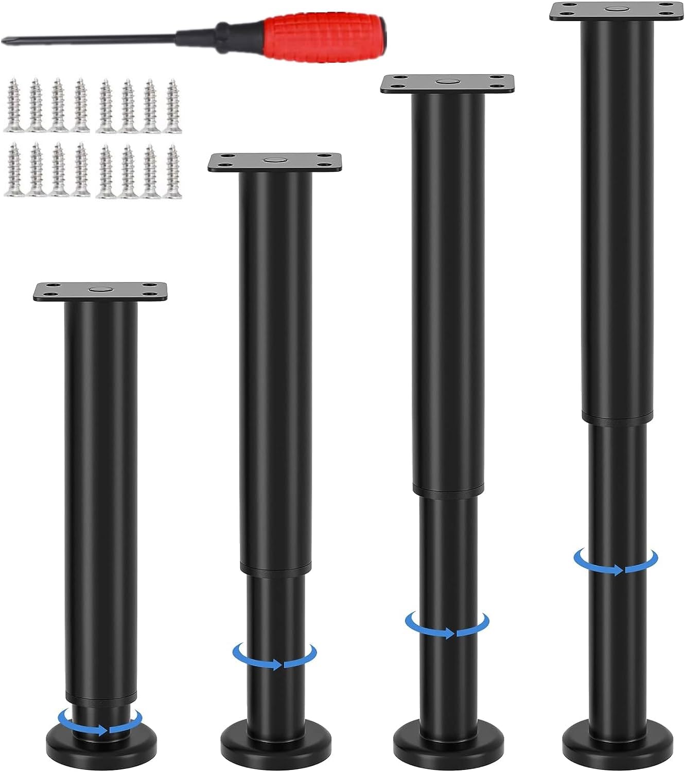 • HÖHENVERSTELLBAR: Möbelfüsse verstellbarsind in 4 Grössen erhältlich, Höhe von 8cm bis 42cm, Sie können drehen, um die gewünschte Höhe der Möbelfüsse einzustellen, das Set enthält Schraubendreher und 16 Schrauben.
