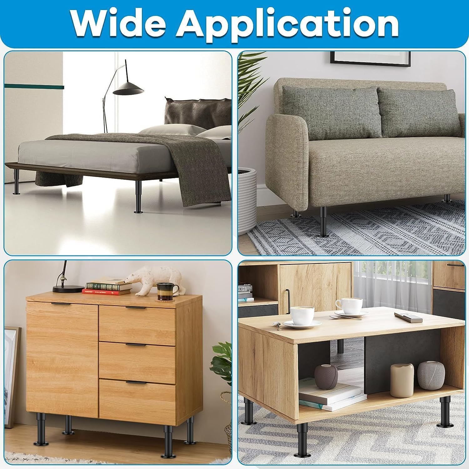 • Weit verbreitet: Verstellbare möbelfüsse sind aus hochwertigem Stahl und Gummi, hoch belastbar, rutschfest, geeignet für alle Arten von Möbeln, wie Betten, Couchtische, TV-Schränke, Sofas, Kleiderschränke, Nachttische, Büromöbel und so weiter.