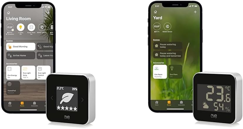 - Produkt 1: Sehen Sich sich die Messwerte auf dem kontrastreichem E-Ink-Display oder dem iPhone an und entwickeln Sie über den Messverlauf in der Eve-App gesunde Verhaltensweisen. Dank integriertem Akku lässt sich Eve Room beliebig und kabellos