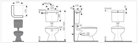 Evenes WC Aufputz Spülkasten mit 2-Mengen weiss tiefhängend 420x390x135 mm WC Bad Badezimmer