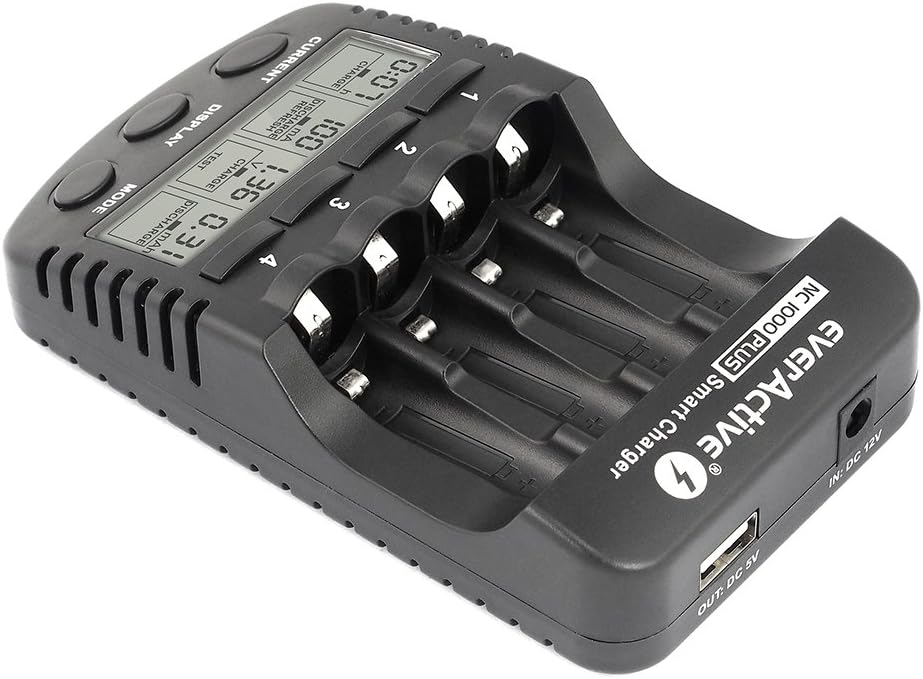 • NUTZUNGSVORTEIL: Das everActive NC-1000 ist ein professionelles, fortschrittliches Ladegerät mit speziellen Messfunktionen, wie Kapazitätstest und Aktualisierungszyklus mit Kapazitätsüberwachung sowie einer Entladefunktion (nach Bedarf). Es hilft,