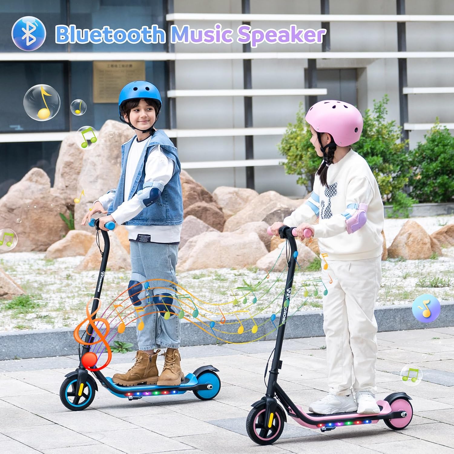 - Eingebauter Lautsprecher: Ausgestattet mit einem hochwertigen drahtlosen Lautsprecher, unterstützt er eine schnelle Bluetooth-Verbindung und verbindet sich in Sekunden mit dem Kinder Elektroscooter. Geniessen Sie jederzeit und überall klaren,