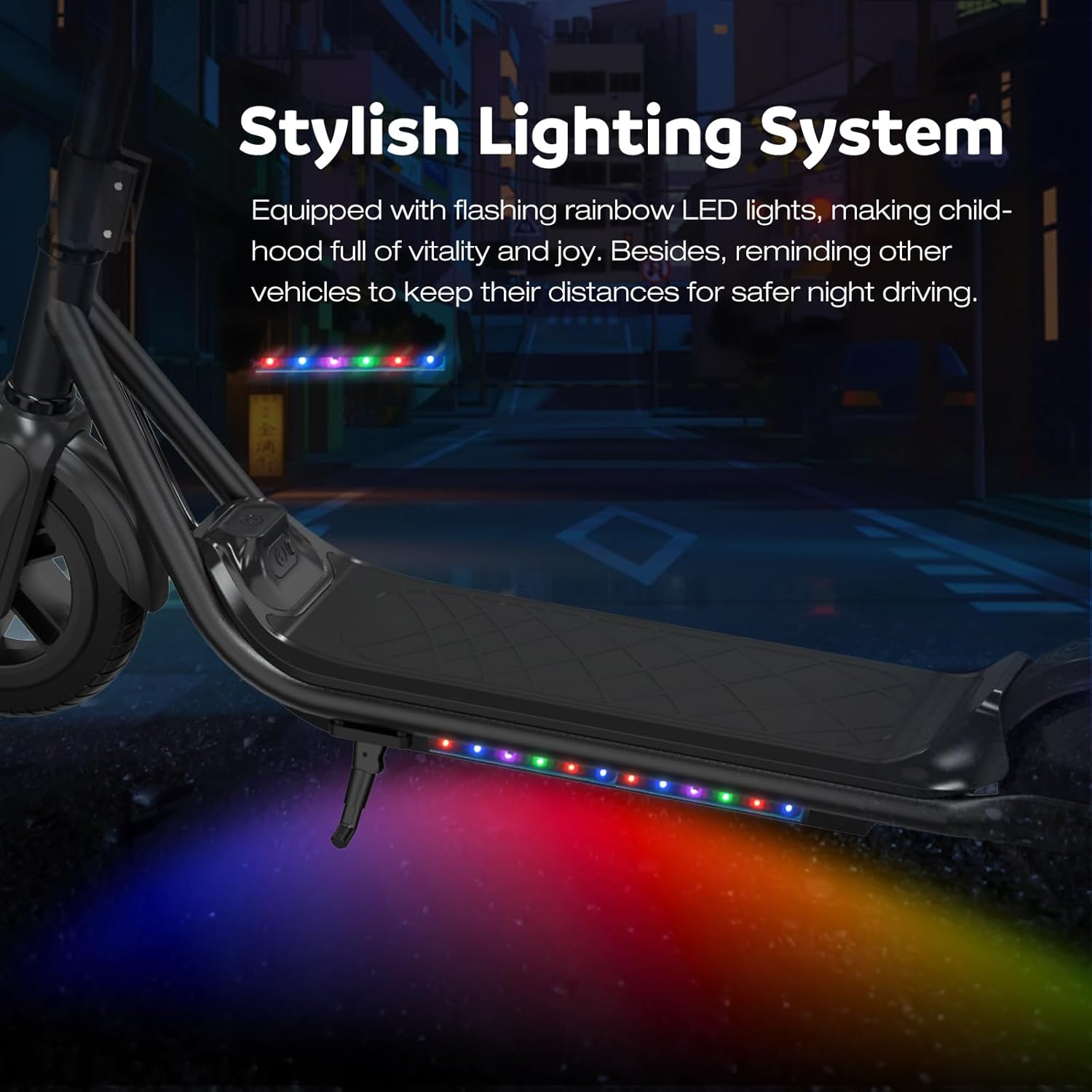- Sicherheit & Beleuchtung: Der elektrische Roller der Kinder hat ein einzigartiges atmendes Lichtdesign auf beiden Seiten des Rollerkörpers, was Kinder noch kühler beim Spielen und heller und leichter in der Nacht zu sehen macht. Ausserdem verwenden wir