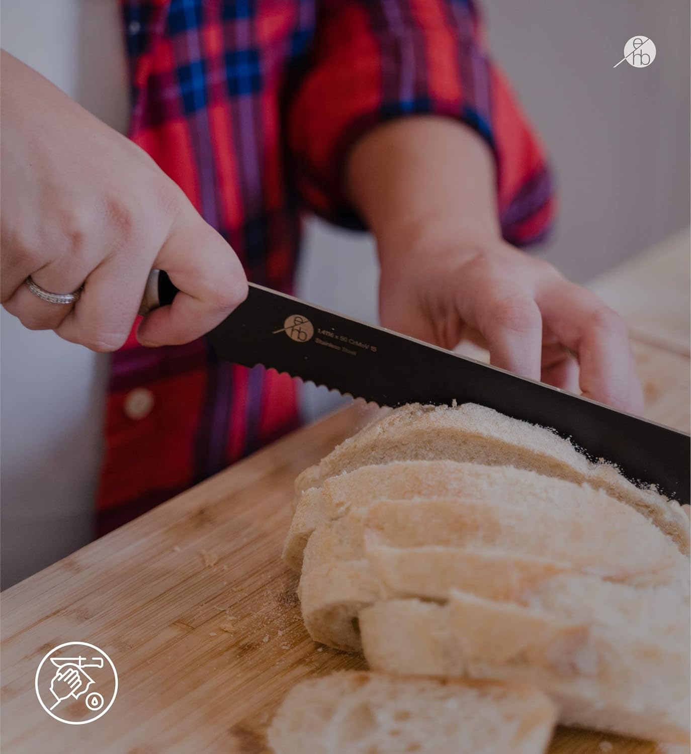 PRODUKTBESCHREIBUNGEN Die Ti-Messer-Serie Pro von Everdure by Heston Blumenthal steht für höchste Verarbeitungsqualität und durchdachtes Design. Die Klingen der Messer-Serie sind aus rostfreiem deutschen Stahl gefertigt, der mit einer Titanbeschichtung veredelt wurde. Die Griffe aus Holz und Edelstahl liegen gut und sicher in der Hand. Das Brotmesser BR ist mit seiner 268 mm langen Wellenschliff-Klinge ideal zum Schneiden von Brot, Brötchen, Baguettes und anderen Backwaren geeignet. Es geht geschmeidig durch hartes und weiches Schnittgut hindurch, ohne dieses zusammenzudrücken oder viele Krümel zu verursachen. Das Messer ist ein Must-have für alle Hobbybäcker und jene, die ein Faible für frisches, ordentlich geschnittenes Brot besitzen. Dank der breit aufgestellten Produktpalette der Ti-Messer-Serie Pro haben Sie für jede Arbeit in der Küche oder am Grill das perfekte Messer parat: Kochmesser und Santoku stehen in verschiedenen Grössen bereit, zudem sind Steakmesser, Hackmesser, Ausbeinmesser, Universalmesser, Schälmesser sowie Brotmesser in exzellenter Ti-Serien-Qualität erhältlich. Für dauerhaft scharfe Klingen über viele Jahre hinweg sorgt der Messerschärfer im passenden Stil.