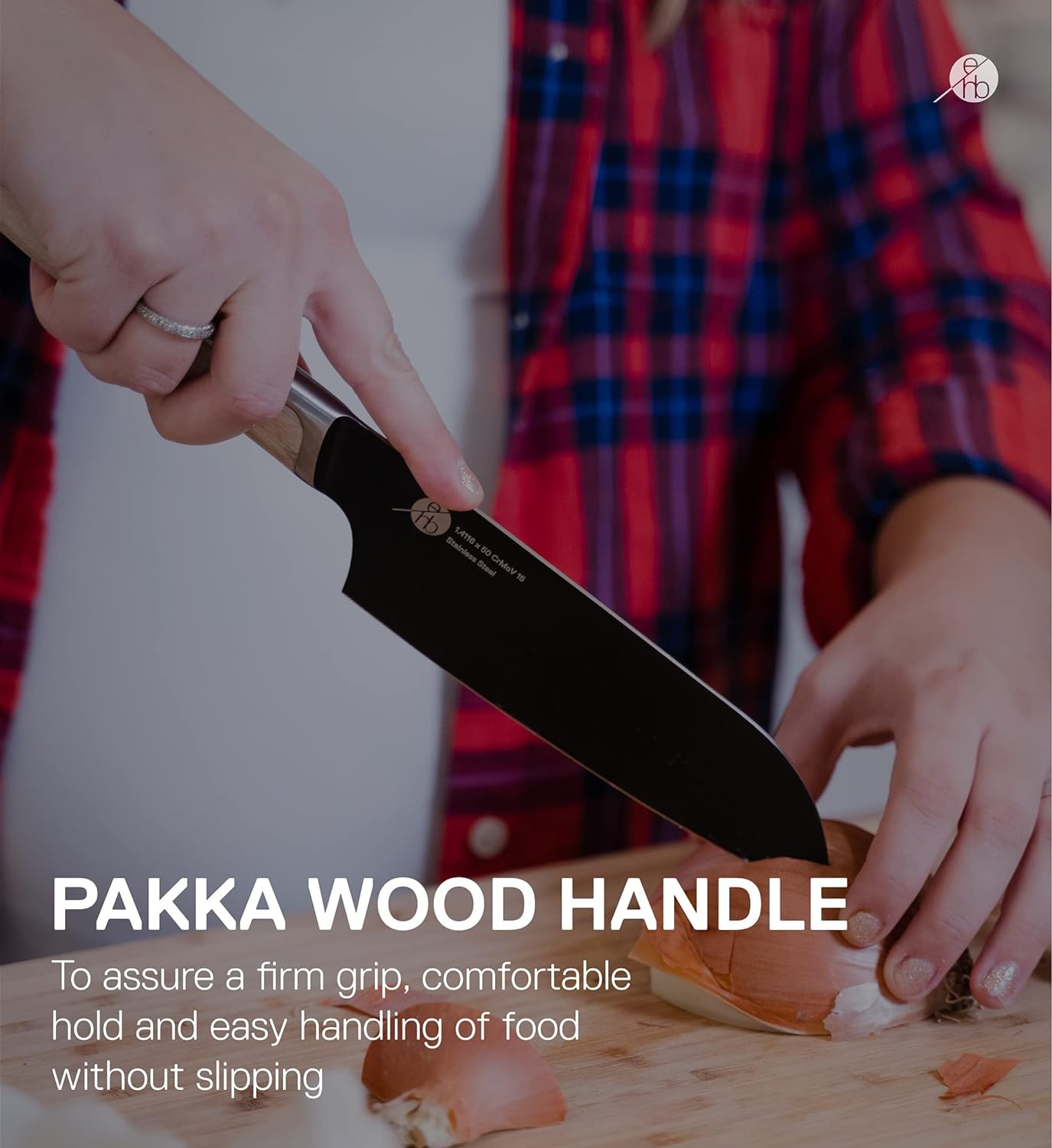 • Hochwertiger Griff aus Edelstahl und Pakkaholz