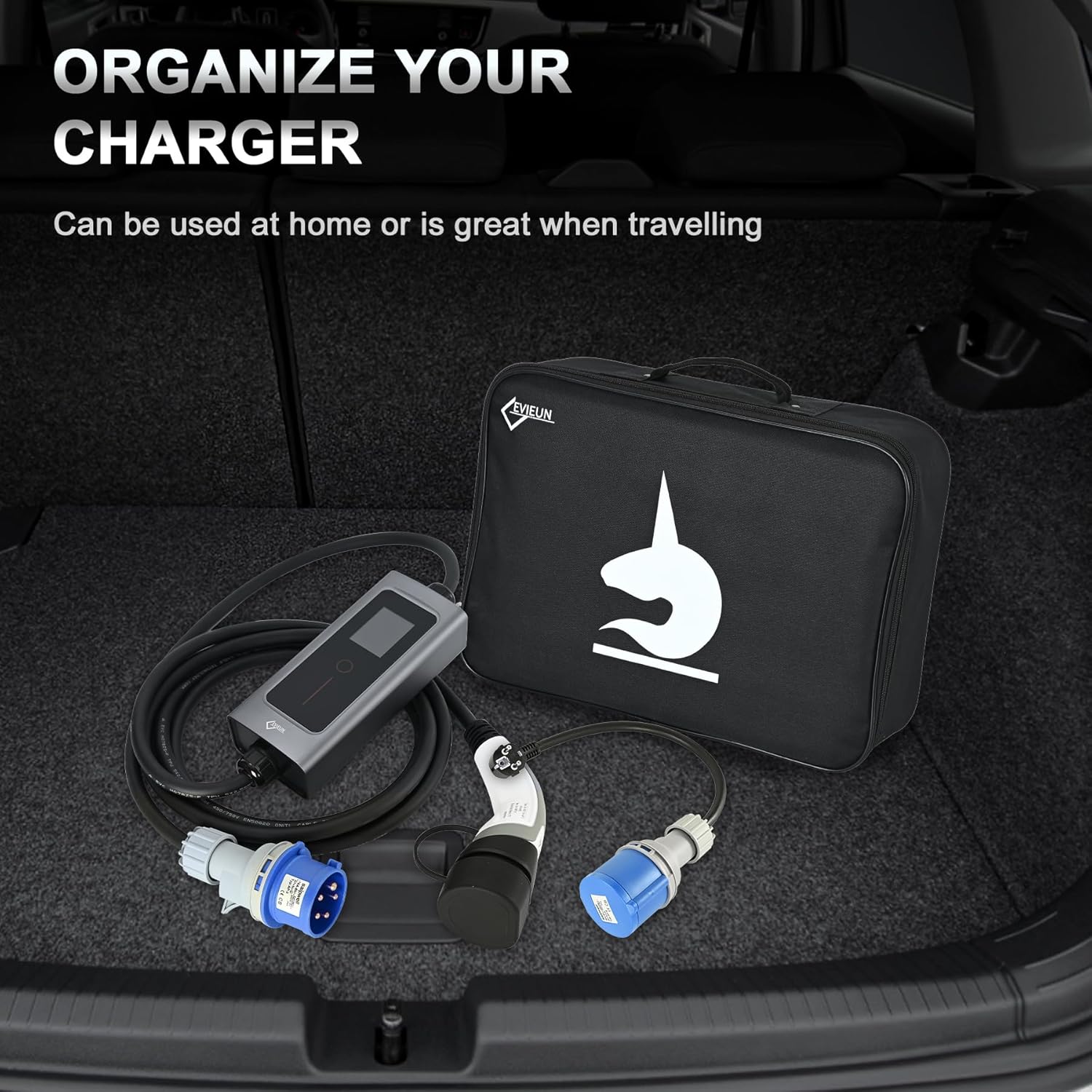 • 【Komfortable Ladelösung】: 5 Meter CEE zu Typ 2 Elektroauto-Ladekabel mit CEE zu Schuko-Adapter und Tragetasche zum Laden ohne Installation. Ev Charger kann als stationäres Wandladegerät zu Hause oder am Arbeitsplatz oder als tragbares