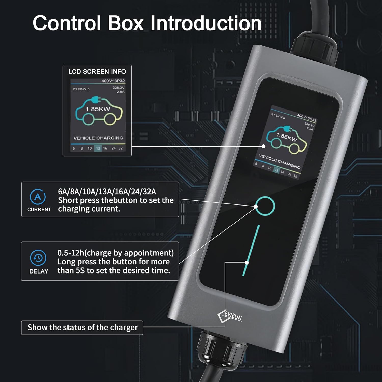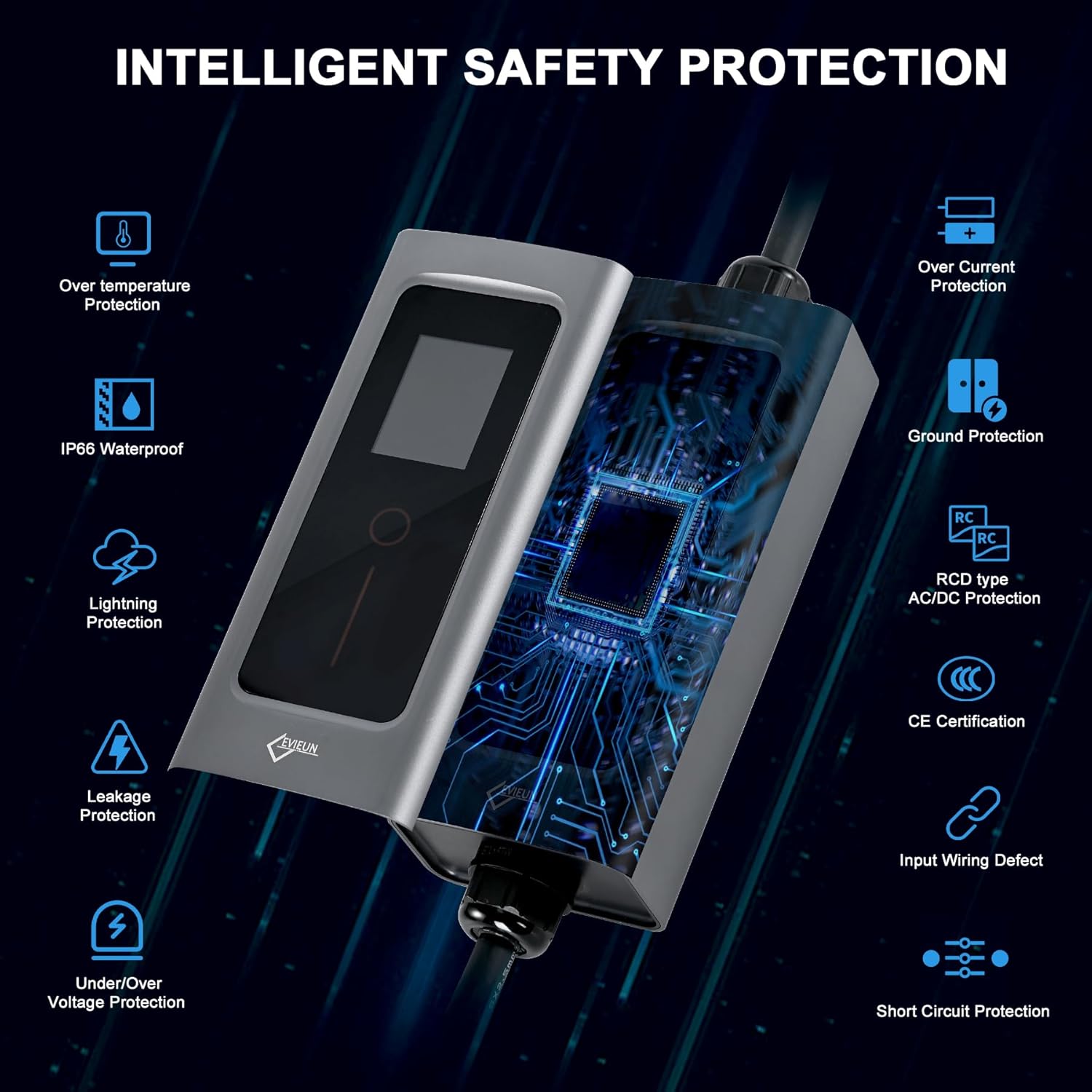 • 【Hohe Sicherheit und Zuverlässigkeit】: Das ev charger ist nach IP66 wasser- und spritzwassergeschützt, stossfest und staubdicht und kann bei Temperaturen von -30°C bis +55°C betrieben werden. Es verfügt über eine eingebaute Leistungsbalance und