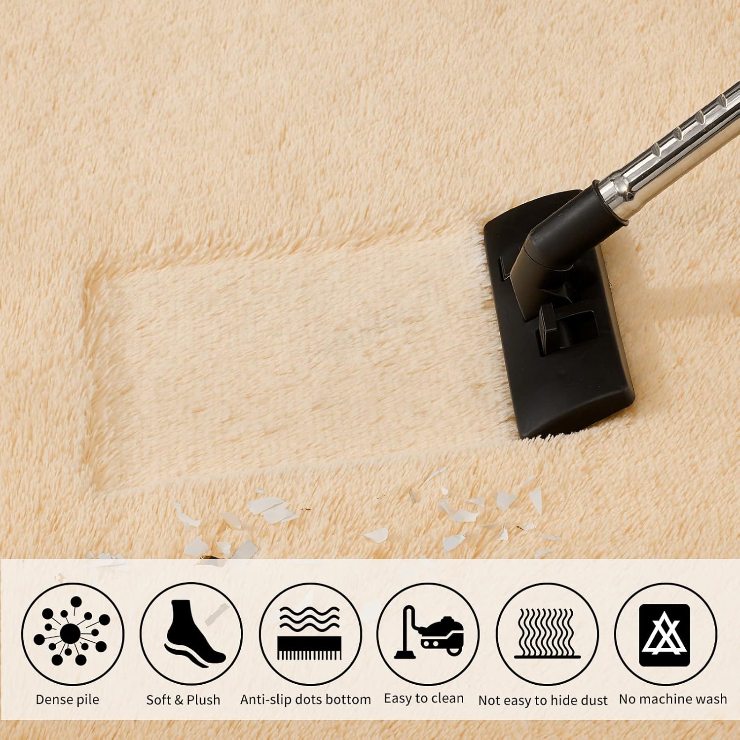 - Leicht zu Reinigen: Verwenden Sie einen Handstaubsauger mit geringer Leistung für Adsorption und Pflege, der den Staub auf der Oberfläche des Hochflorteppichs schnell reinigen kann. Sie können den Teppich auch manuell reinigen oder abwischen. Legen