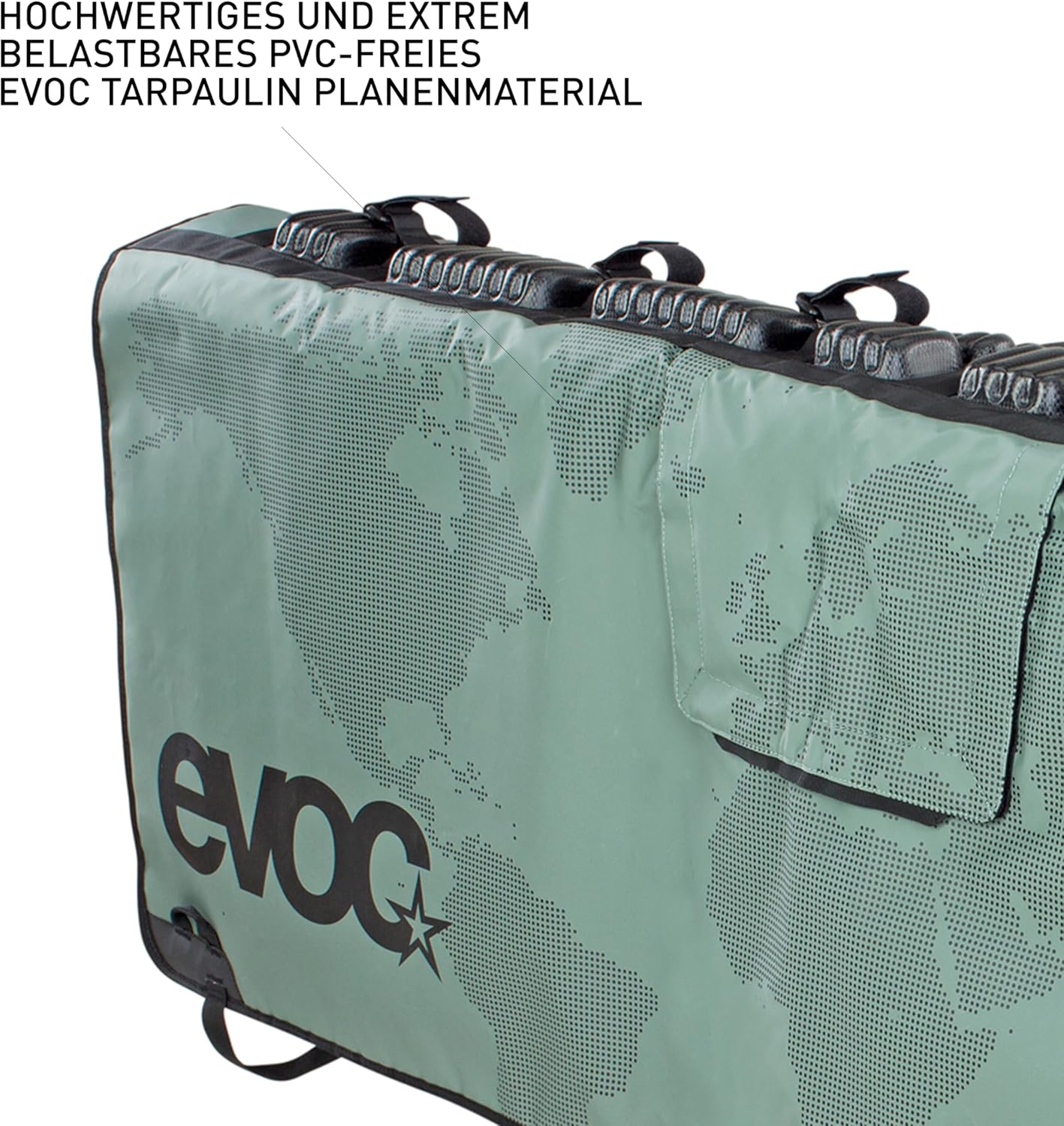 - Lieferumfang: EVOC TAILGATE PAD Fahrradträger Heckklappe - sichere Fixierung von bis zu 6 Bikes - Schnellzugriff zum Ladeklappenhebel - Fahrrad Tasche für Pickup - Bike Schutz - Grösse: M/L - Farbe: Olive