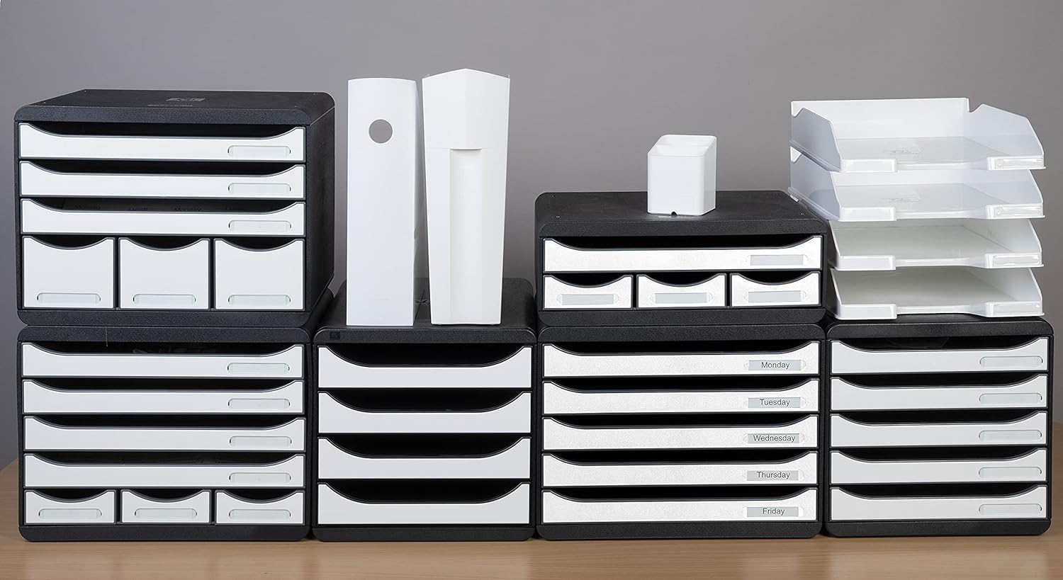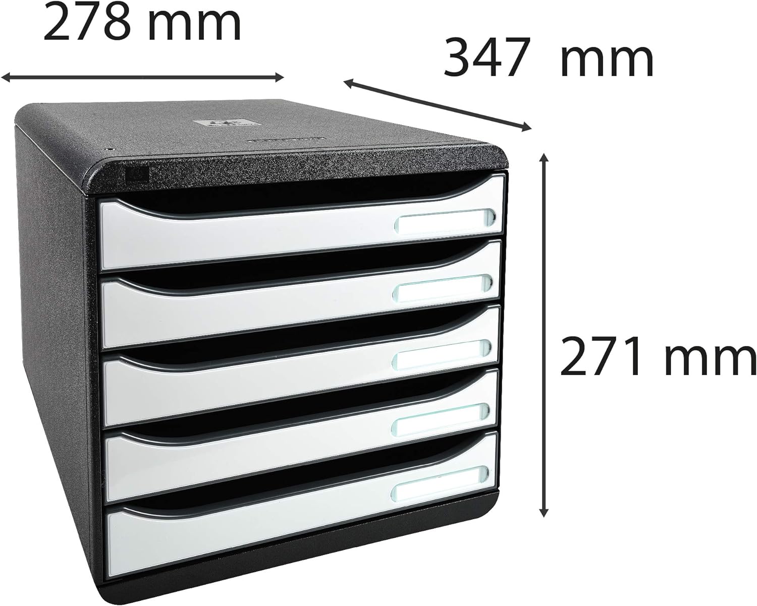 Exacompta 3097213D Premium Ablagebox mit 5 Schubladen für DIN A4+ Dokumente. Stapelbare Schubladenbo