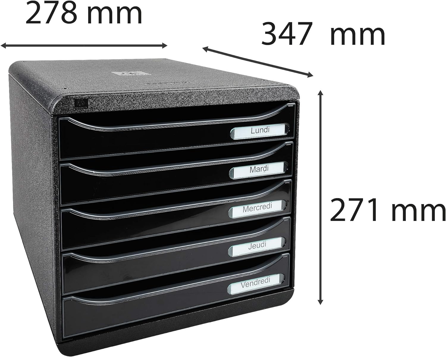 Exacompta 3097214D Premium Ablagebox mit 5 Schubladen für DIN A4+ Dokumente. Stapelbare Schubladenbo