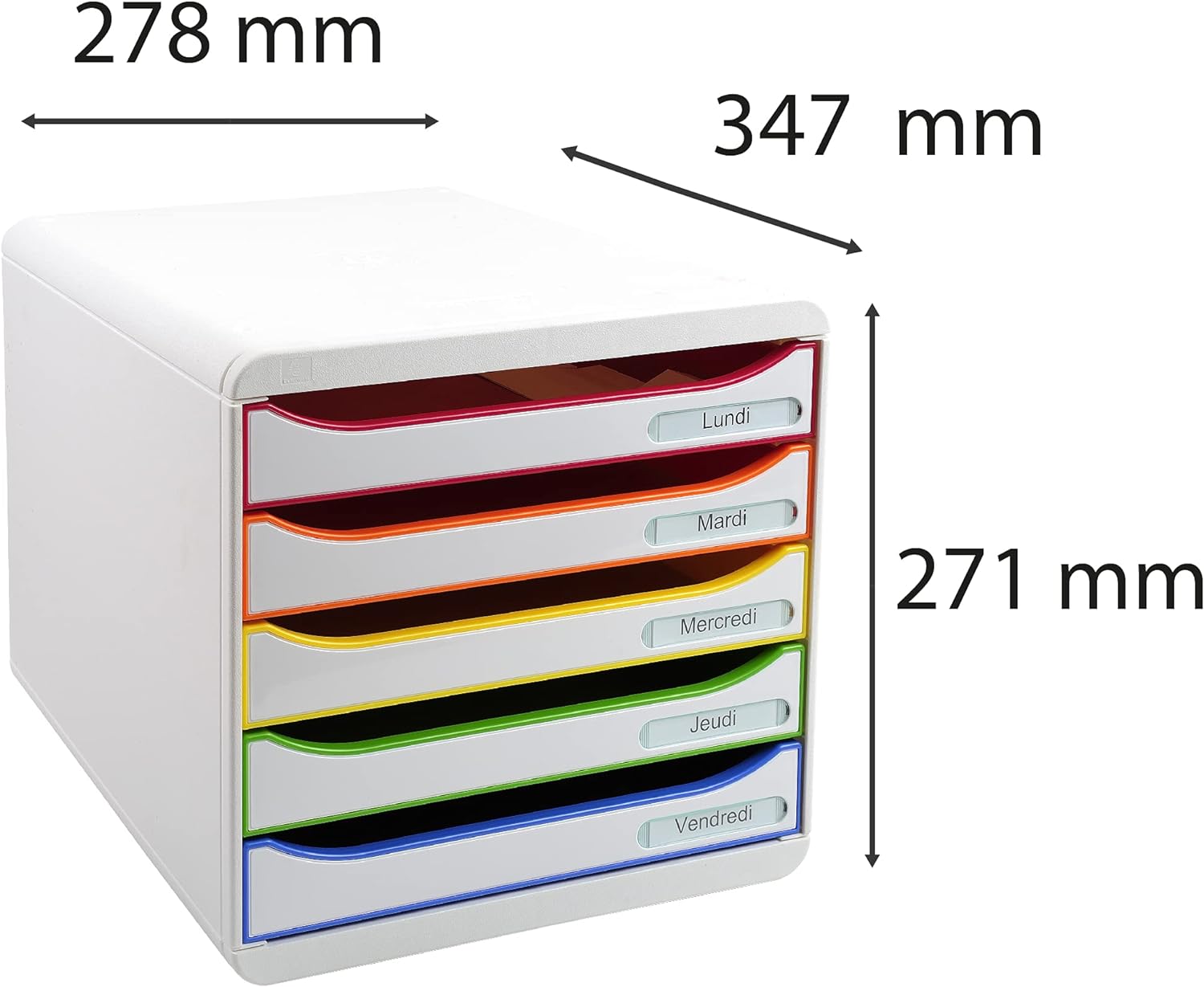 Exacompta 309913D Premium Ablagebox mit 5 Schubladen für DIN A4+ Dokumente. Stapelbare Schubladenbox