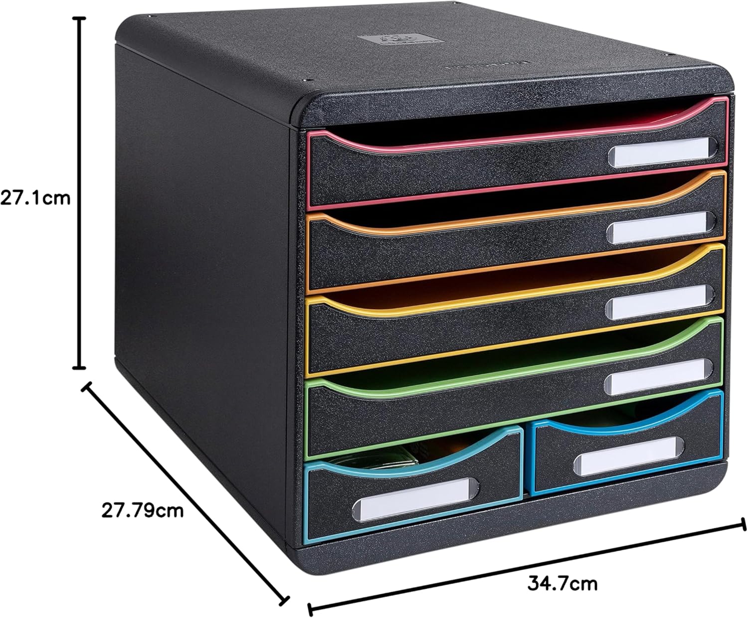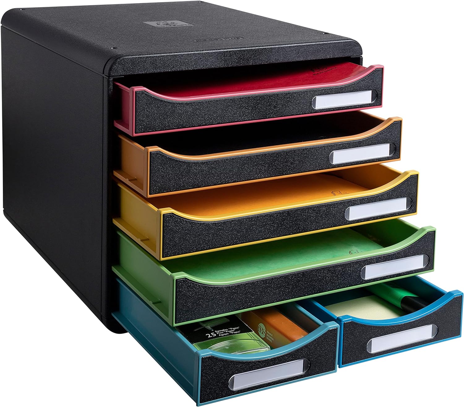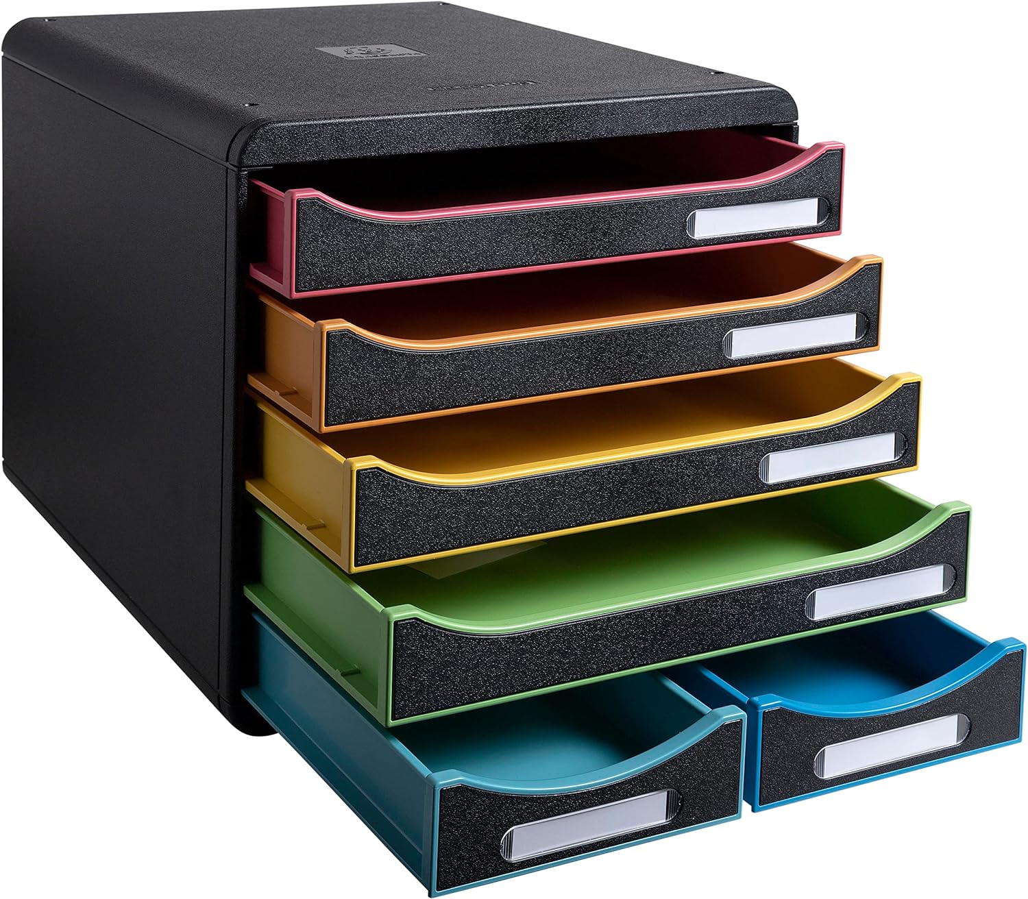 Exacompta 312914D Ablagebox Harlekin aus Recycling-Kunststoff mit 4 Schubladen für DIN A+ und 2 Schu