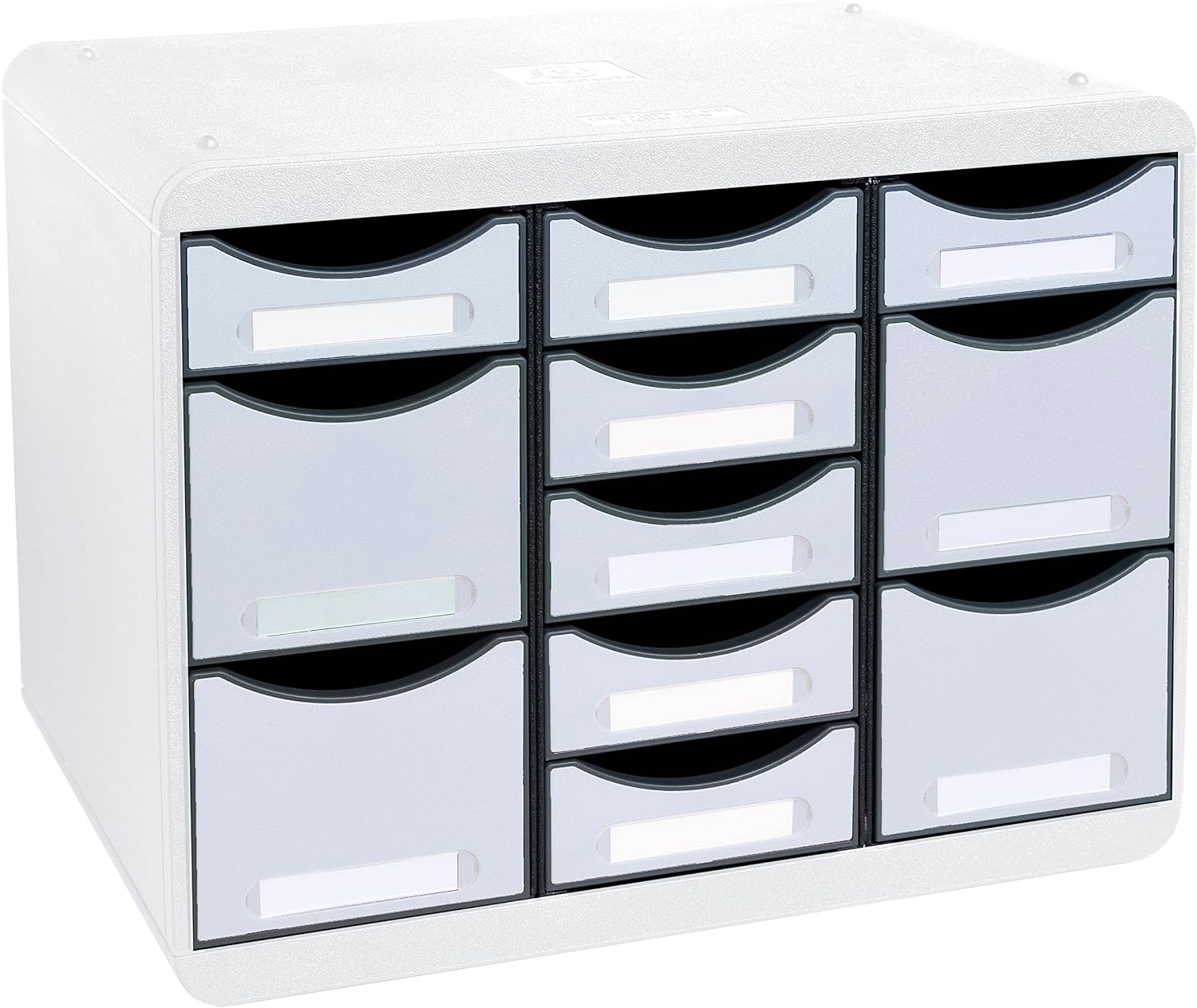 - Schubladenklassifizierung: einzelner grauer Kasten mit 11 Schubladen, 7 dünne Schubladen und 4 hohe Schubladen zur Aufbewahrung aller Utensilien im Büro. Vollständig modular, die Schubladen können nach Bedarf organisiert werden.
