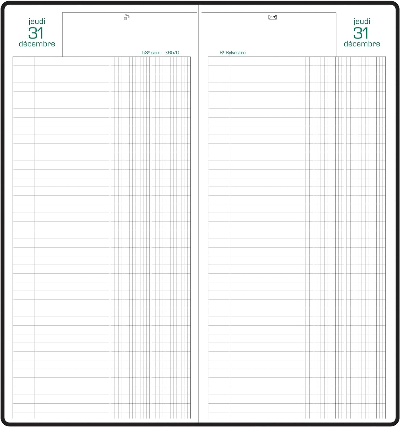 - Der Kalender mit voller Länge für Profis: ein Tag auf 2 Seiten, jeden Tag des Jahres. Er lässt die Freiheit zu notieren, was man will (Termine, Reservierungen oder Bestellungen), ohne stündliche Einschränkungen. Mit Schlitzen für