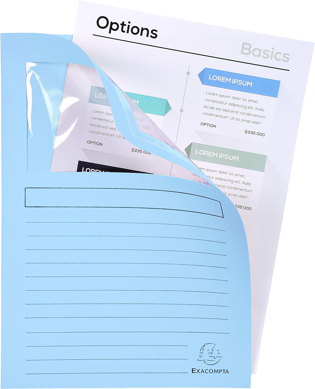 • Eine Packung mit 100 Fenstermappen Super von Exacompta, Die Fenstermappen sind PEFC zertifiziert für eine verantwortungsvolle Verwaltung des Rohstoffes, Aus hochqualifiziertem Clairefontaine-Papier 160g/qm, Praktisch und robust