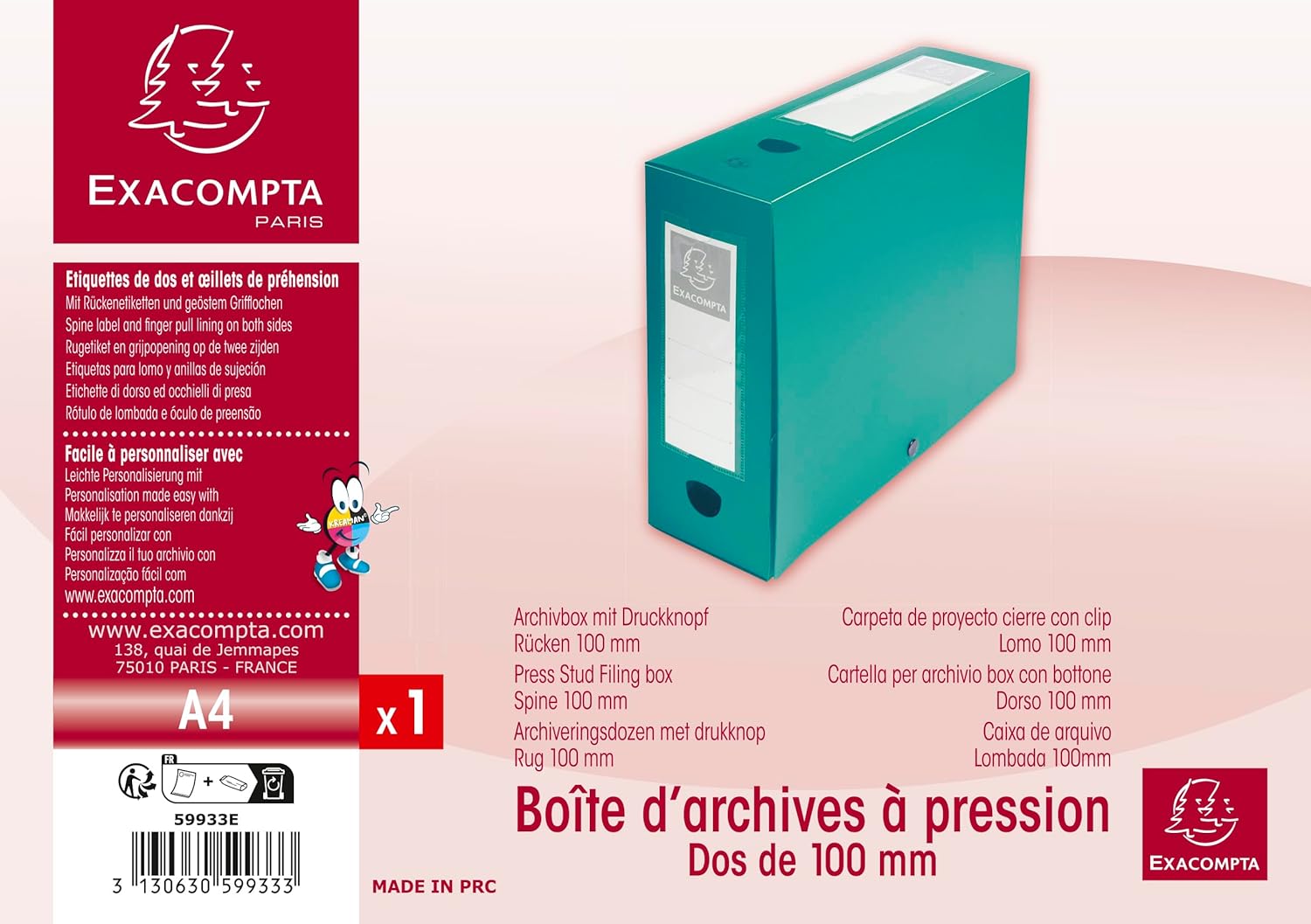 Exacompta 59933E Packung (mit 10 Archivboxen aus PP, mit Druckknopf, Rücken 100mm, DIN A4, mit Rücke
