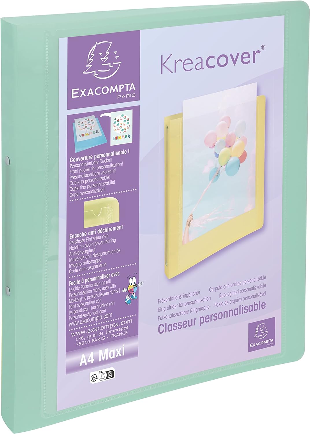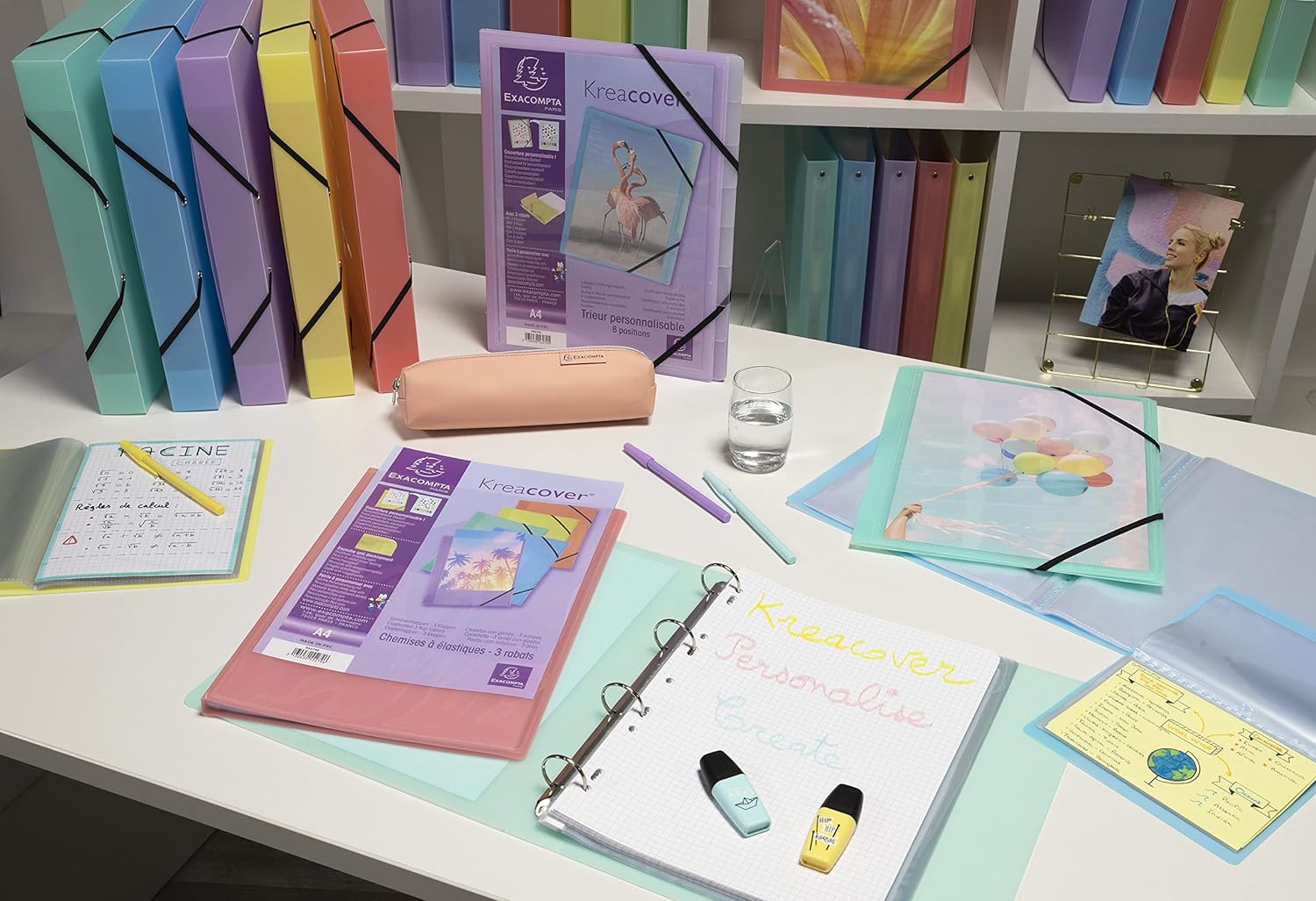 • Einfach zu personalisieren mit KREAMAN auf der Website Exacompta – hergestellt in Frankreich, 5 verschiedene Farben: Pastellblau, Koralle, Gelb, Lila, Pastellgrün