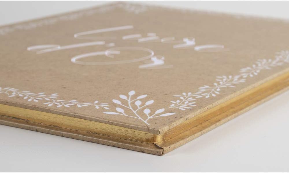 - Dieses sehr schöne Gästebuch in Kraftpapier-Optik vereint Eleganz und Mode mit seinem weissen Pflanzenmotiv, um die schönsten Bilder des Lebens zu verschönern.