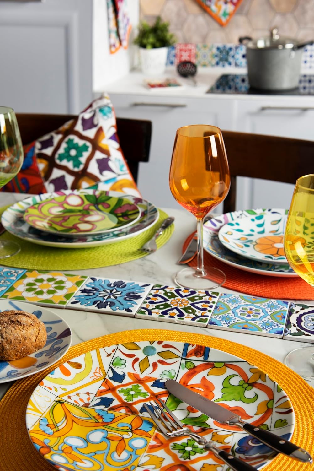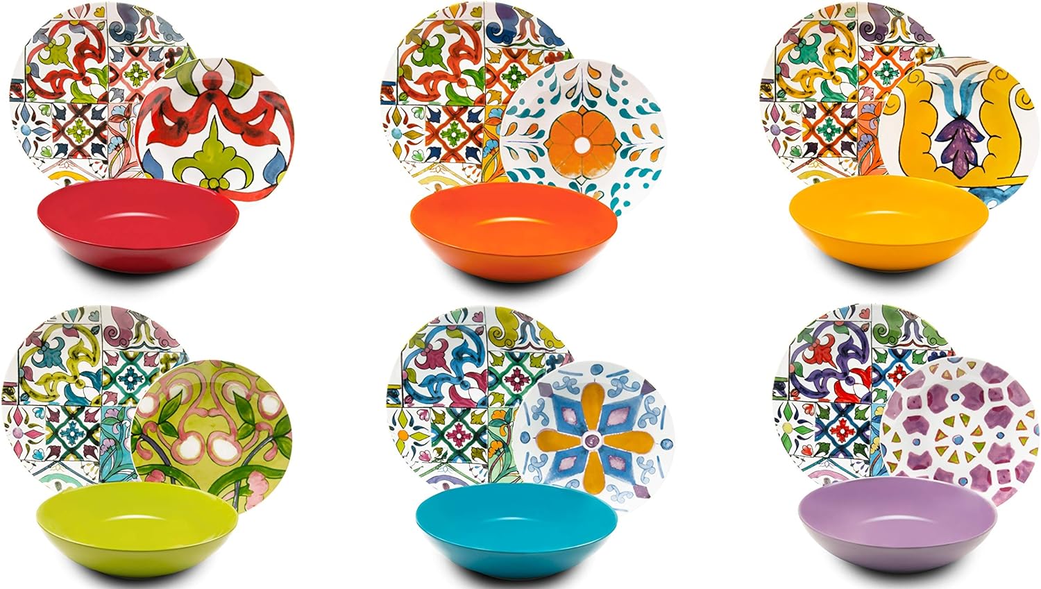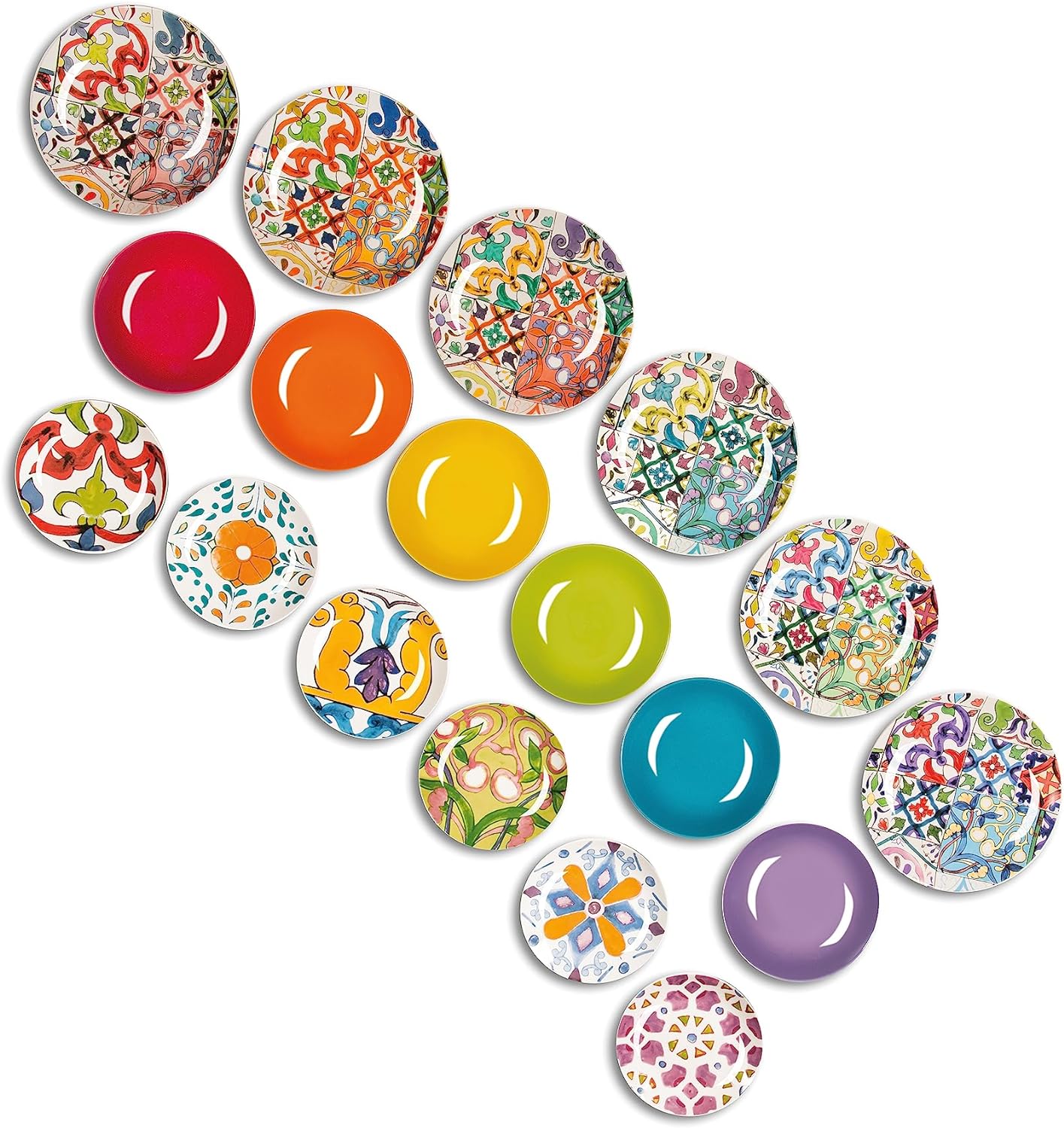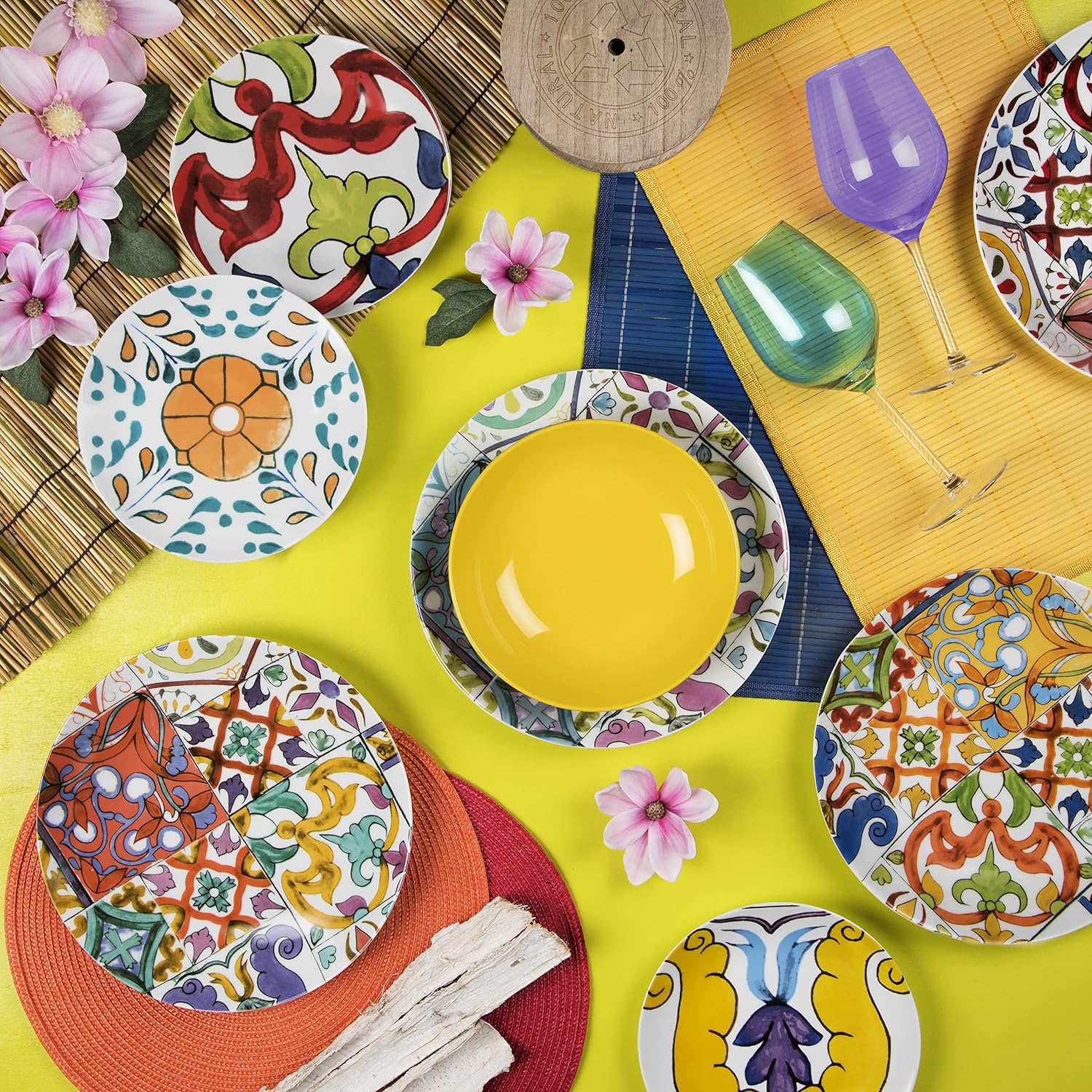 Excelsa Lissabon Tellerservice 18 Stück, Porzellan und Keramik, mehrfarbig Single, Single