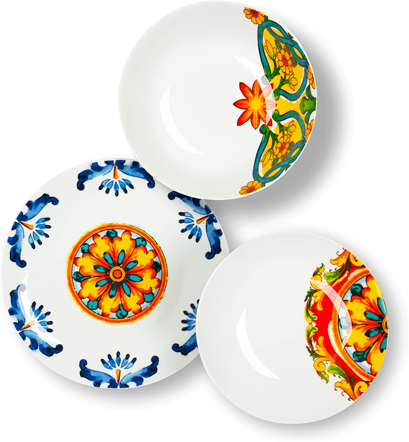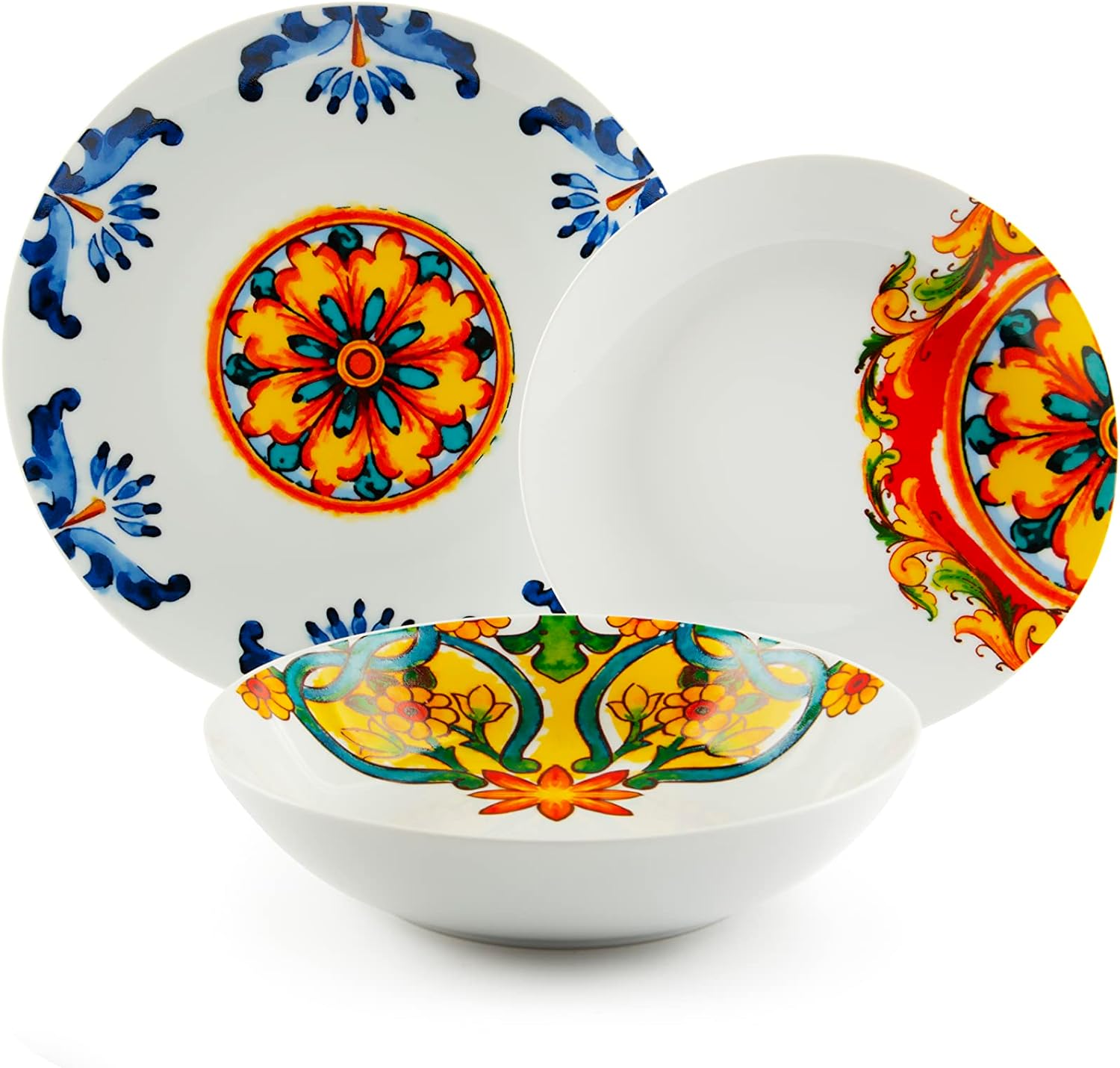 - Das Teller-Set besteht aus 6 flachen Tellern mit einem Durchmesser von 24 cm. und 2,5 cm Höhe, 6 Suppenteller Ø 20,5 cm 5 cm hoch. und 6 Obstteller mit einem Durchmesser von 19 und einer Höhe von 2 cm.