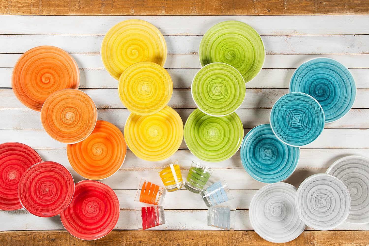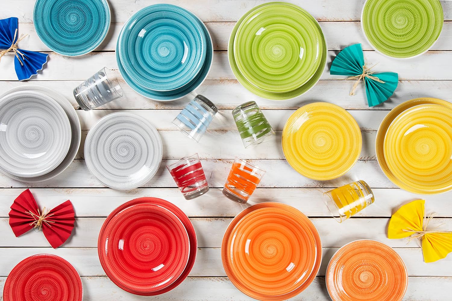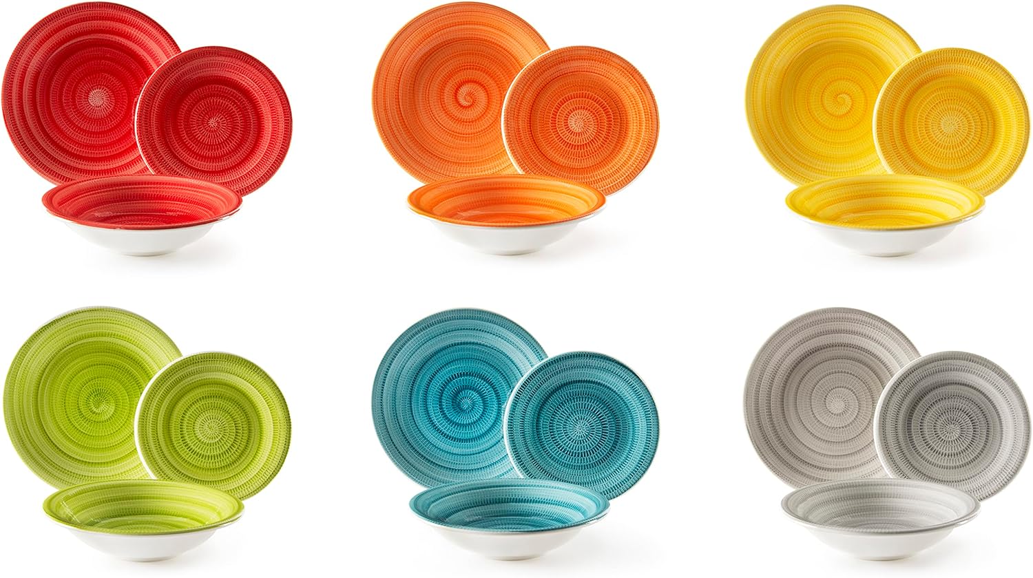 - Speiseteller, Suppenteller und Obstteller mit Old Italy Full Color, mehrfarbig: Gelb, Blau, Orange, Grün, Rot und Grau.