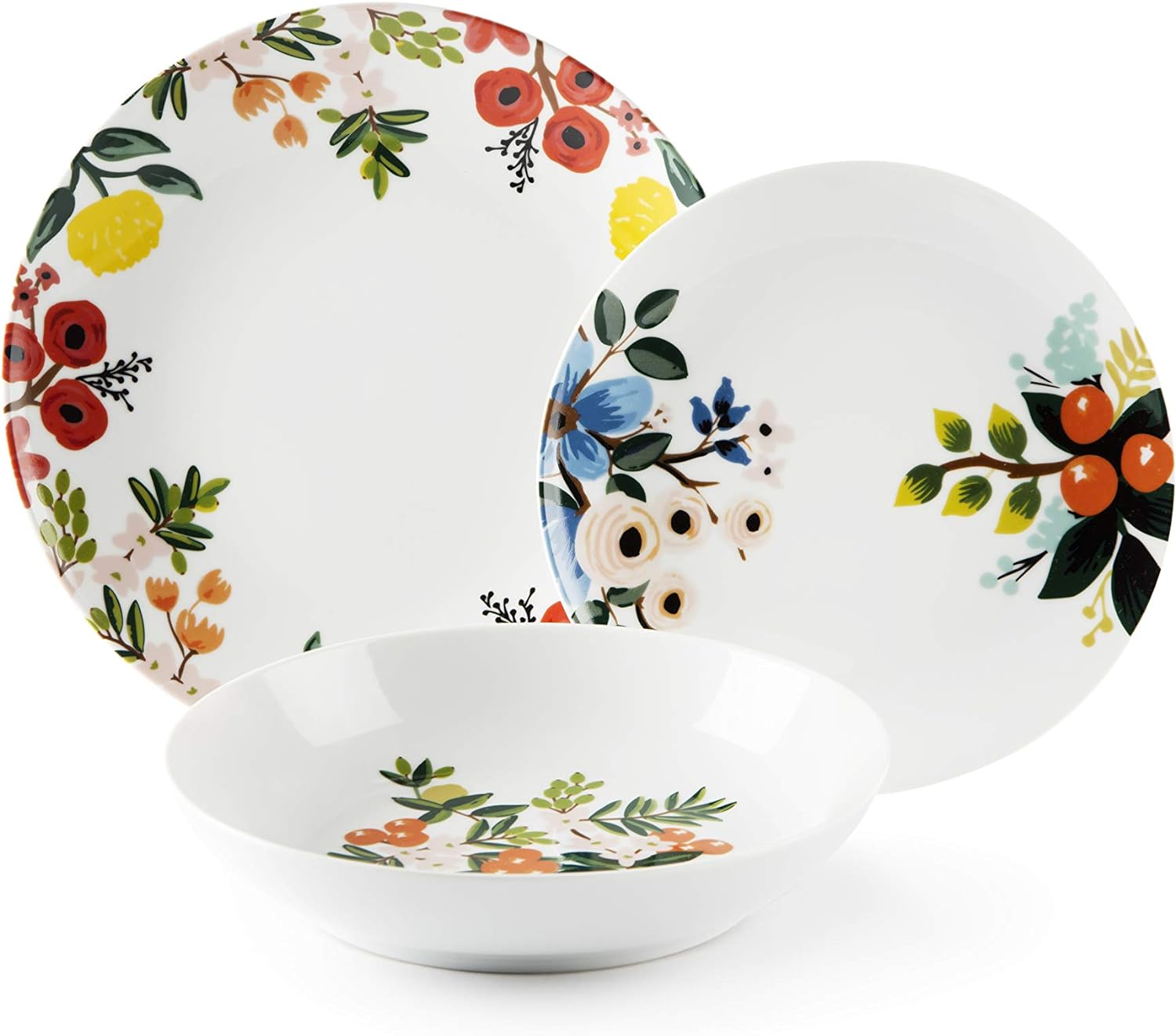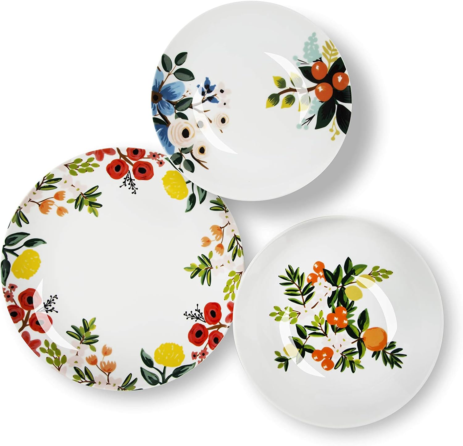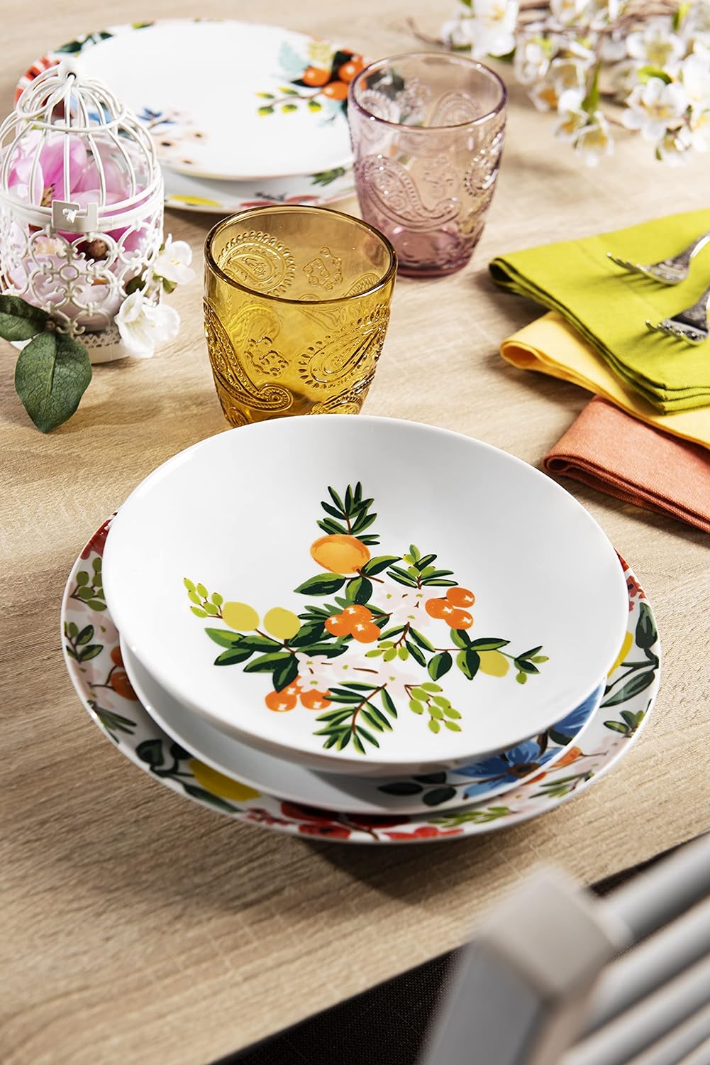- DESIGN: Das Service ist mit Motiven verziert, die von Frida Kahos Gemälden inspiriert sind, so dass Sie wilde Knospen, Butterblumen und Sommerfrüchte im naiven Stil auf den Tisch bringen und eine starke und originelle Atmosphäre mit verträumten und