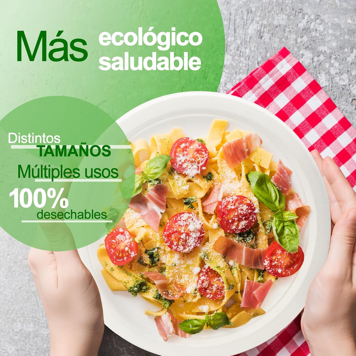 - ÖKOLOGISCHE PLATTEN: Unsere Teller werden aus Zuckerrohrfasern hergestellt, so dass wir ein biologisch abbaubares und völlig natürliches Produkt anbieten. Es hilft der Umwelt und erfüllt gleichzeitig Ihre Bedürfnisse.