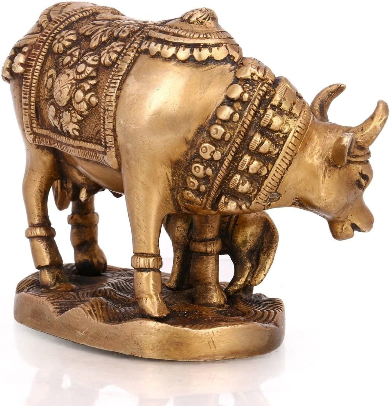 Exotic India Kuh mit Kalb Messing Statue, 13,2 x 5,8 x 10,2 cm