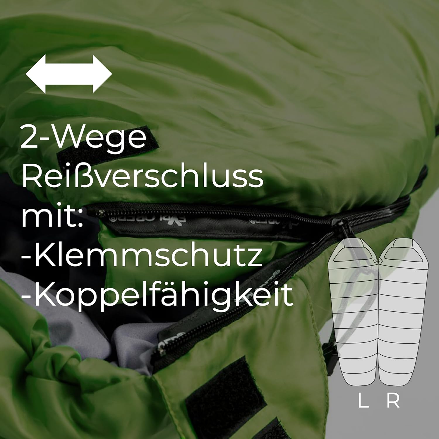 - 🌿 𝗦𝗧𝗔𝗕𝗜𝗟 & 𝗙𝗥𝗨𝗦𝗧𝗙𝗥𝗘𝗜 - Der 3-4-Jahreszeiten Schlafsack ist mit einem 2-fachen Antiklemmband am Zipper ausgestattet – für eine frustfreie Bedienung.