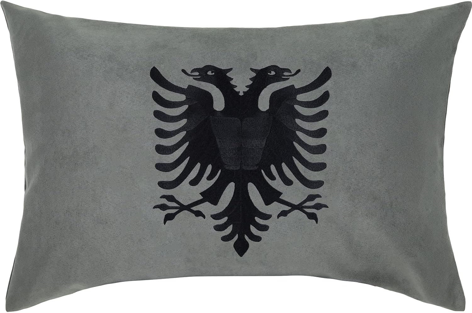 EXPRESS-STICKEREI Premium Kissen mit Füllung Albanien Wappen Fahne Albania Flagge Dekokissen Zierkis