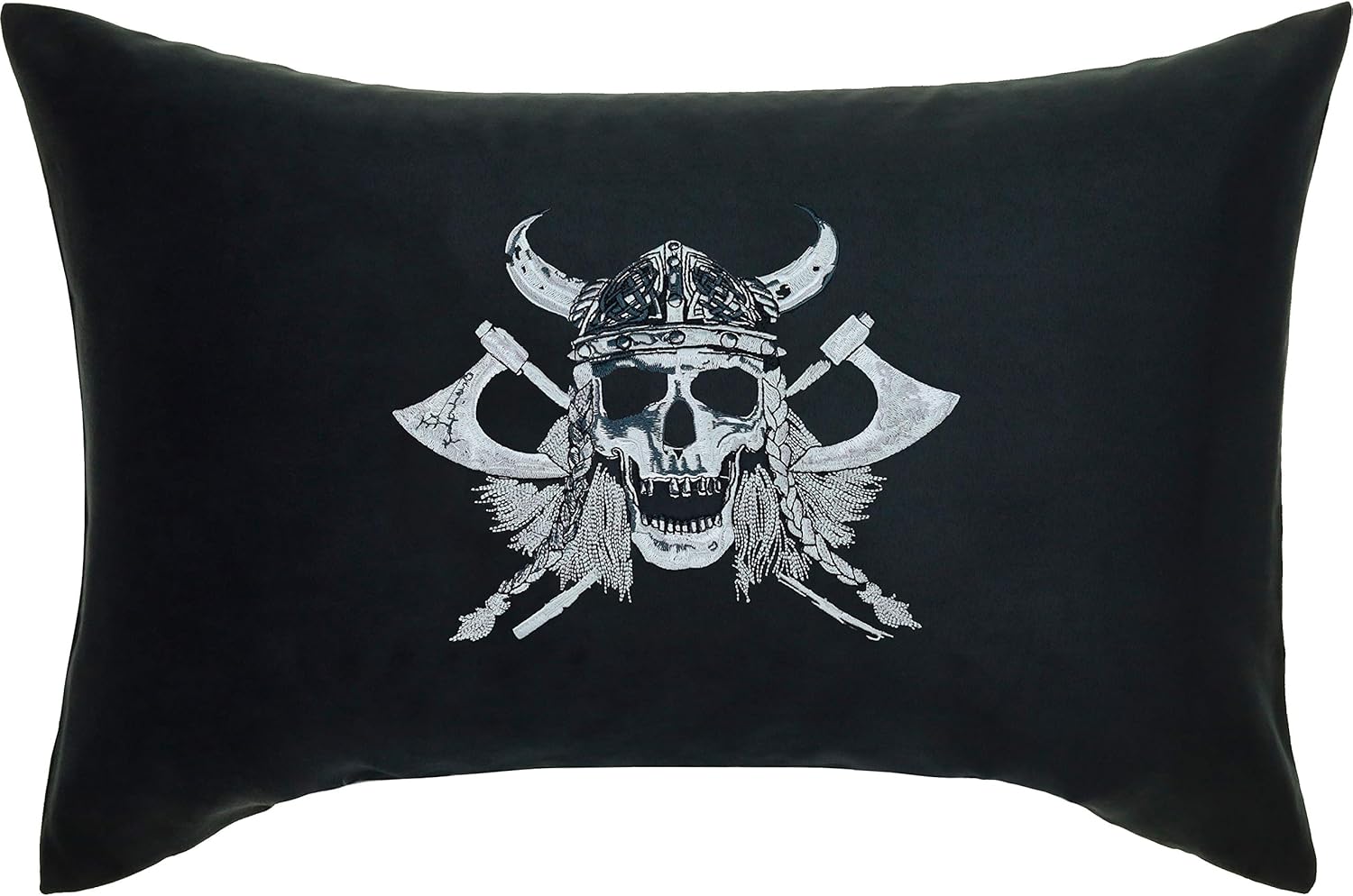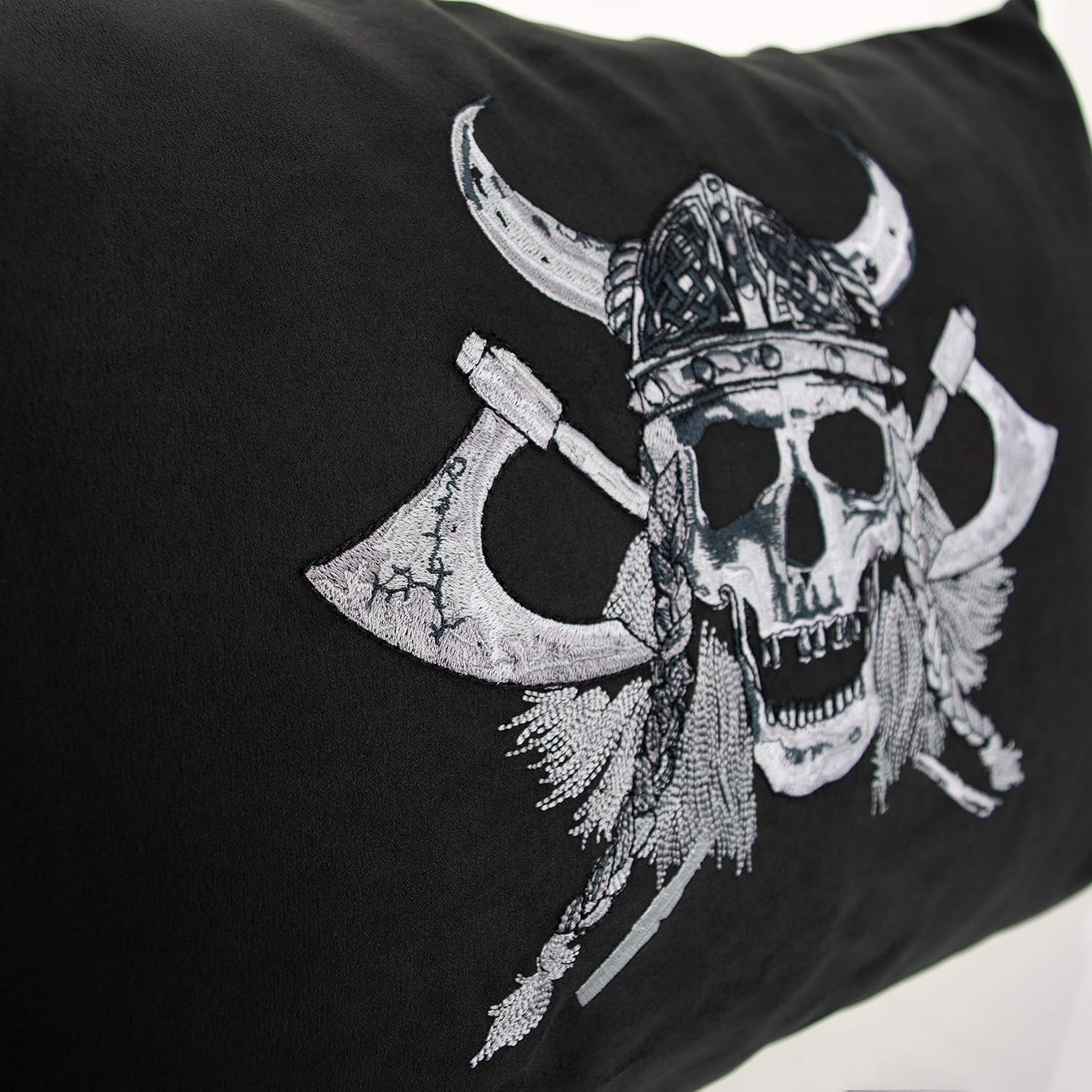EXPRESS-STICKEREI Wikinger Kissen mit Füllung 40x60cm Totenkopf Wikinger Dekoration Skull Head Vikin