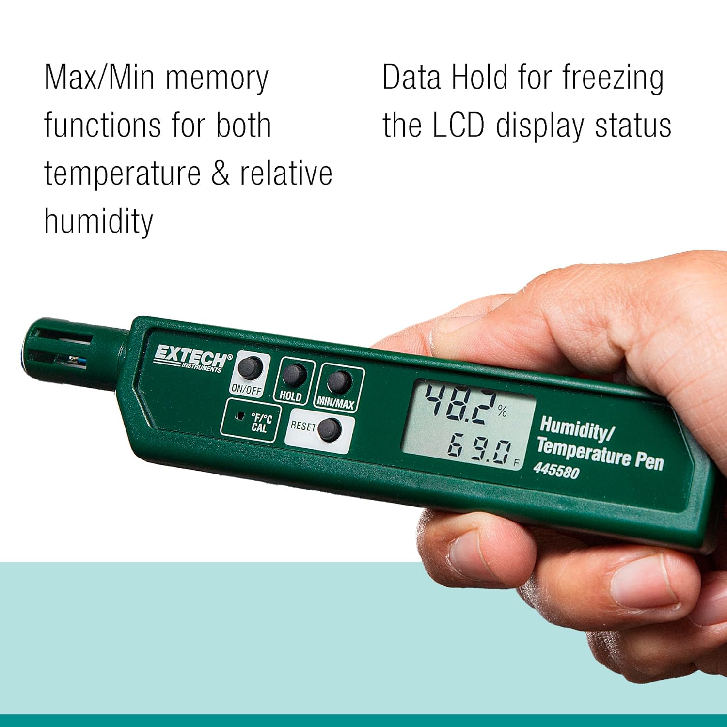 - Zeigt auf einem Doppel-Display die relative Feuchte von 10% bis 90% sowie die Lufttemperatur von 0°C bis 50°C
